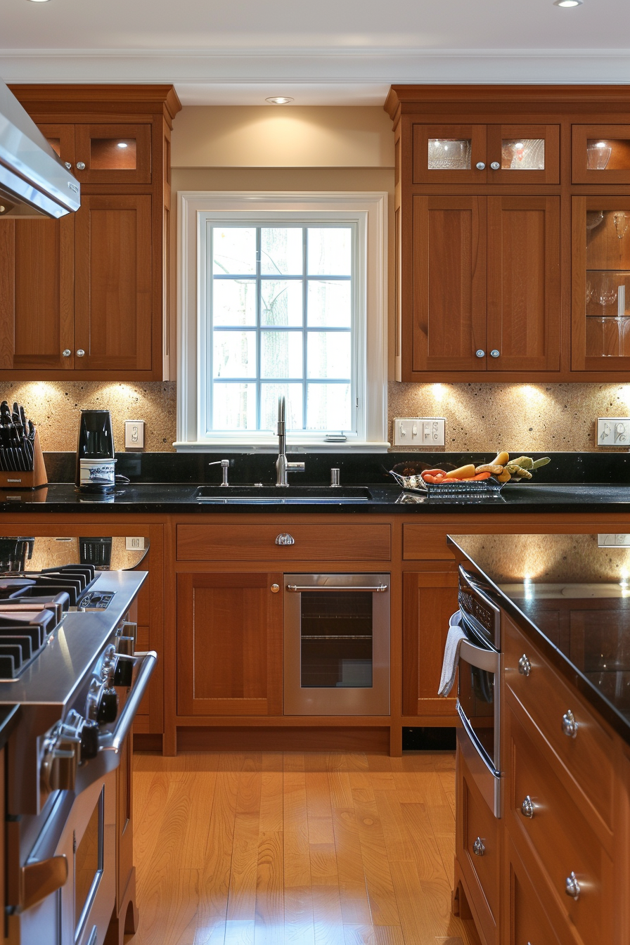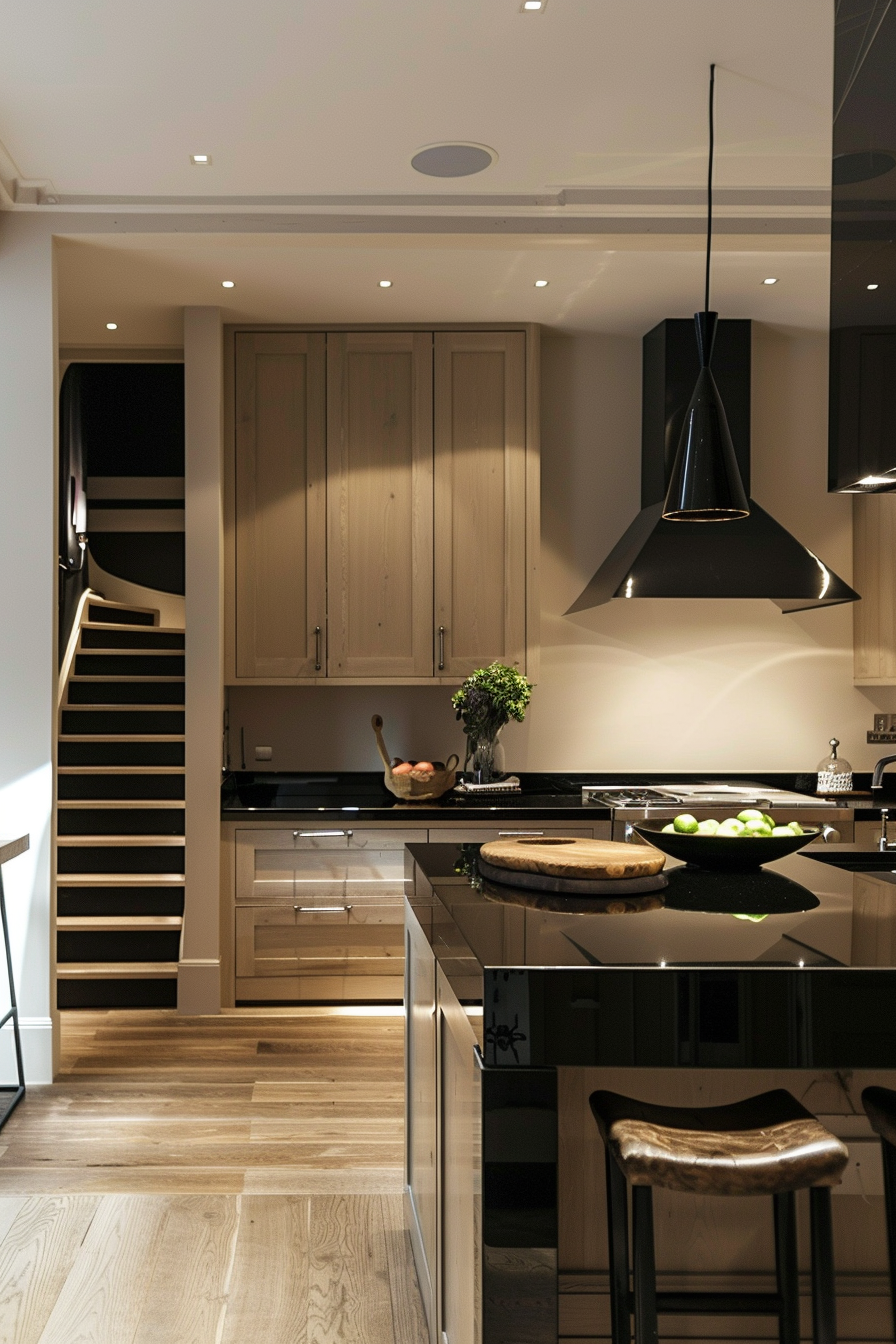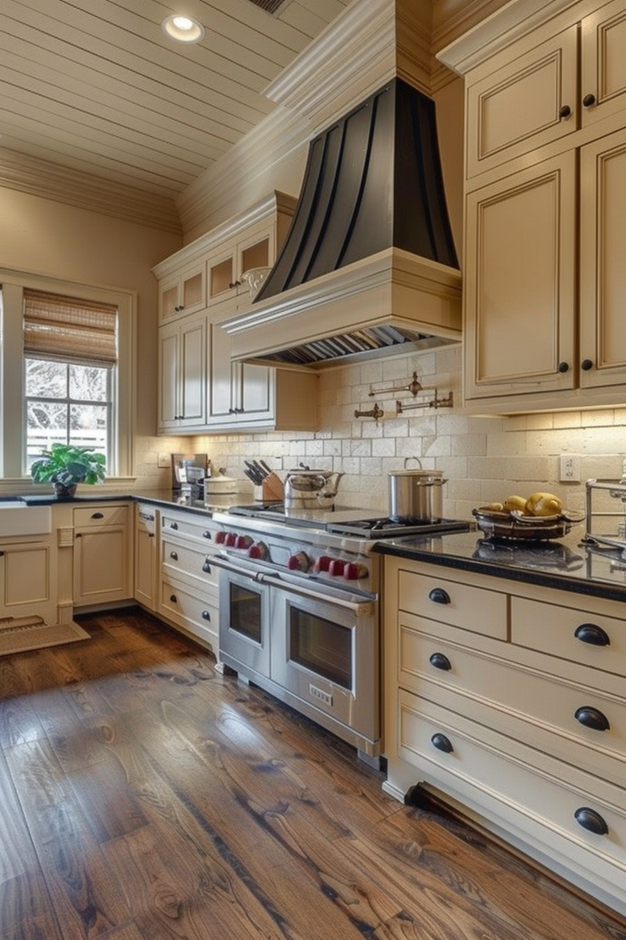 Pairing beige cabinets with black countertops can create a stunning contrast that feels both modern and classic.