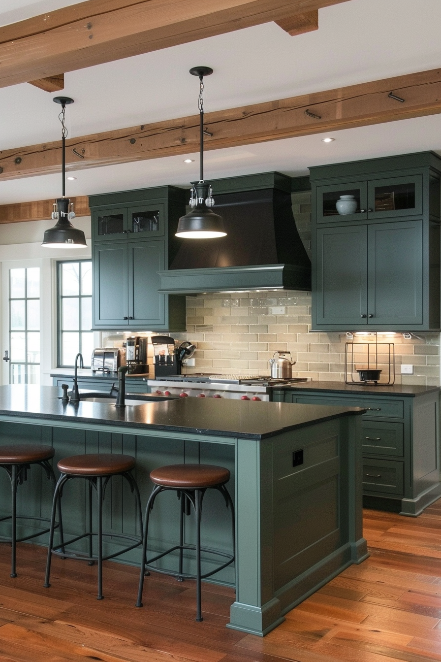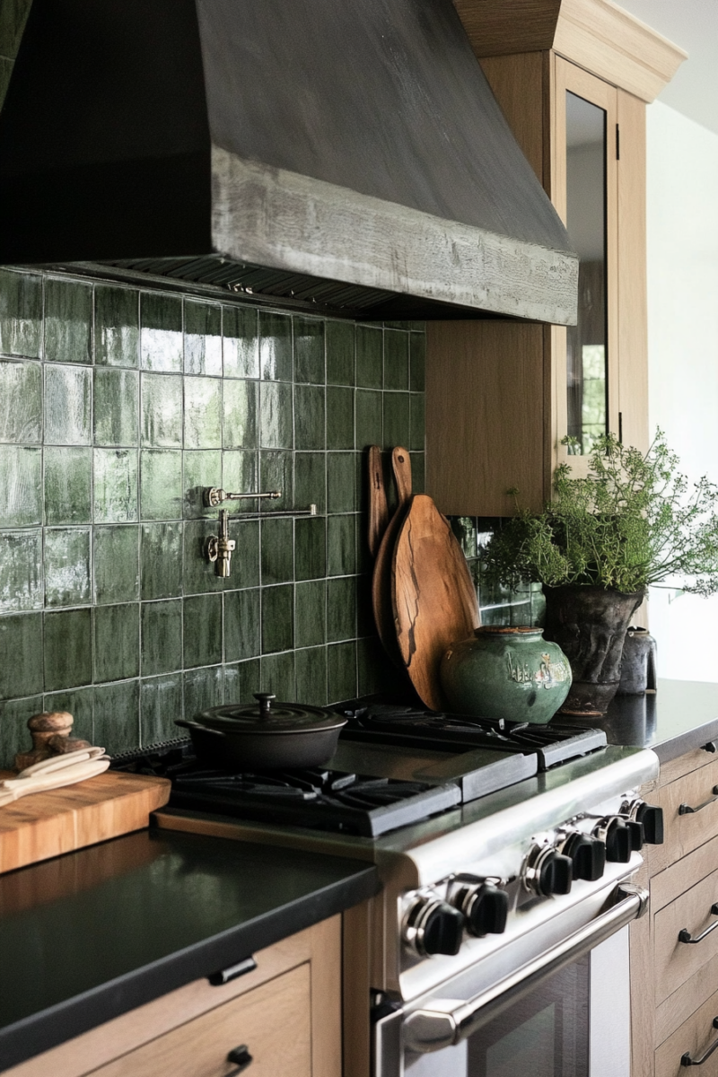 Forest green works especially well in kitchens with a lot of natural light, as it enhances the connection between indoor and outdoor spaces.