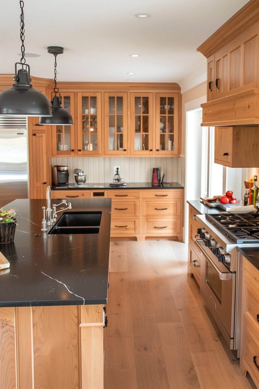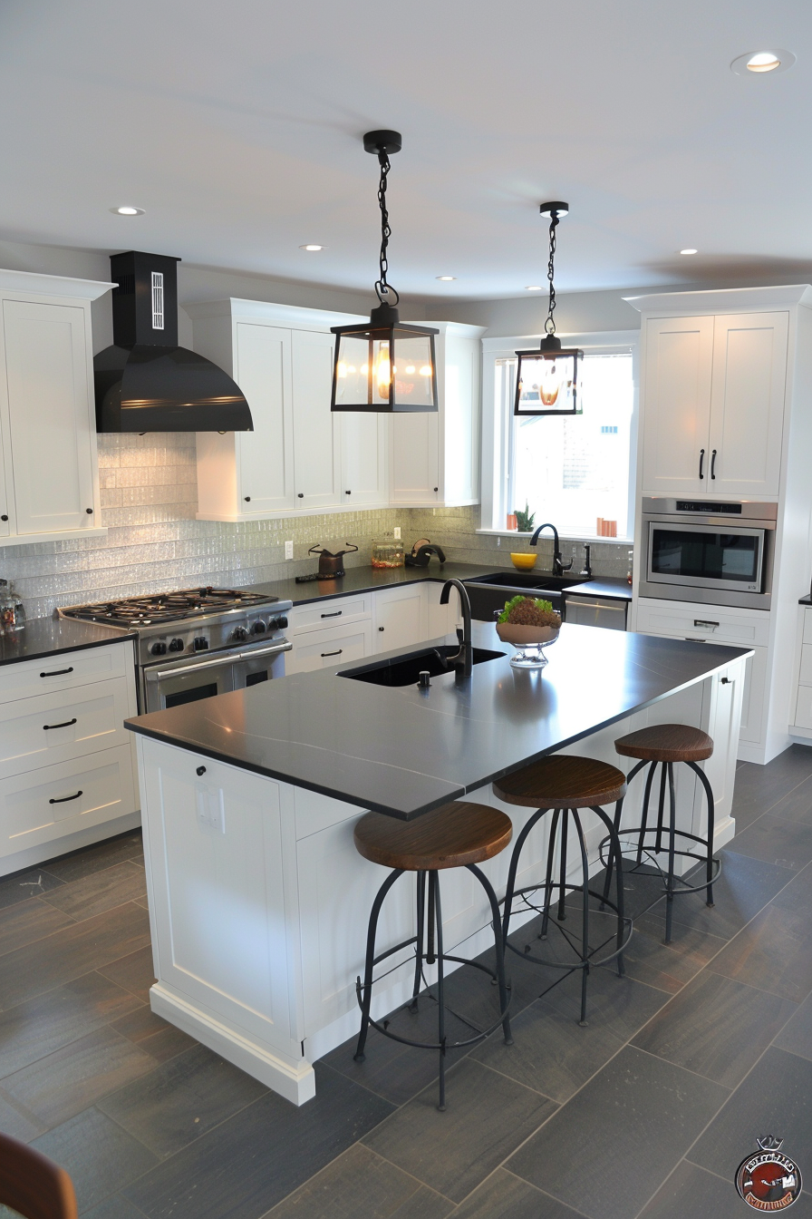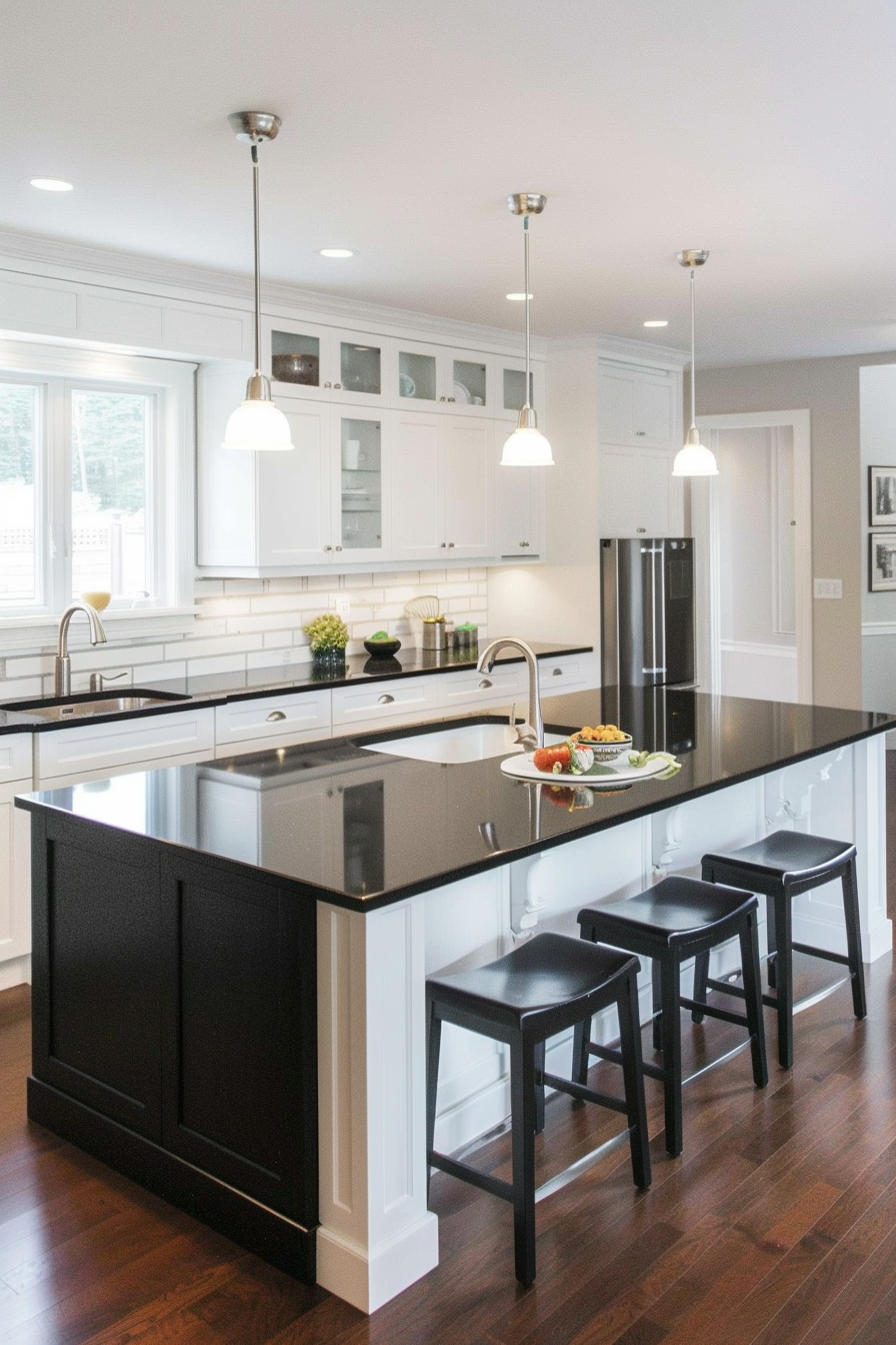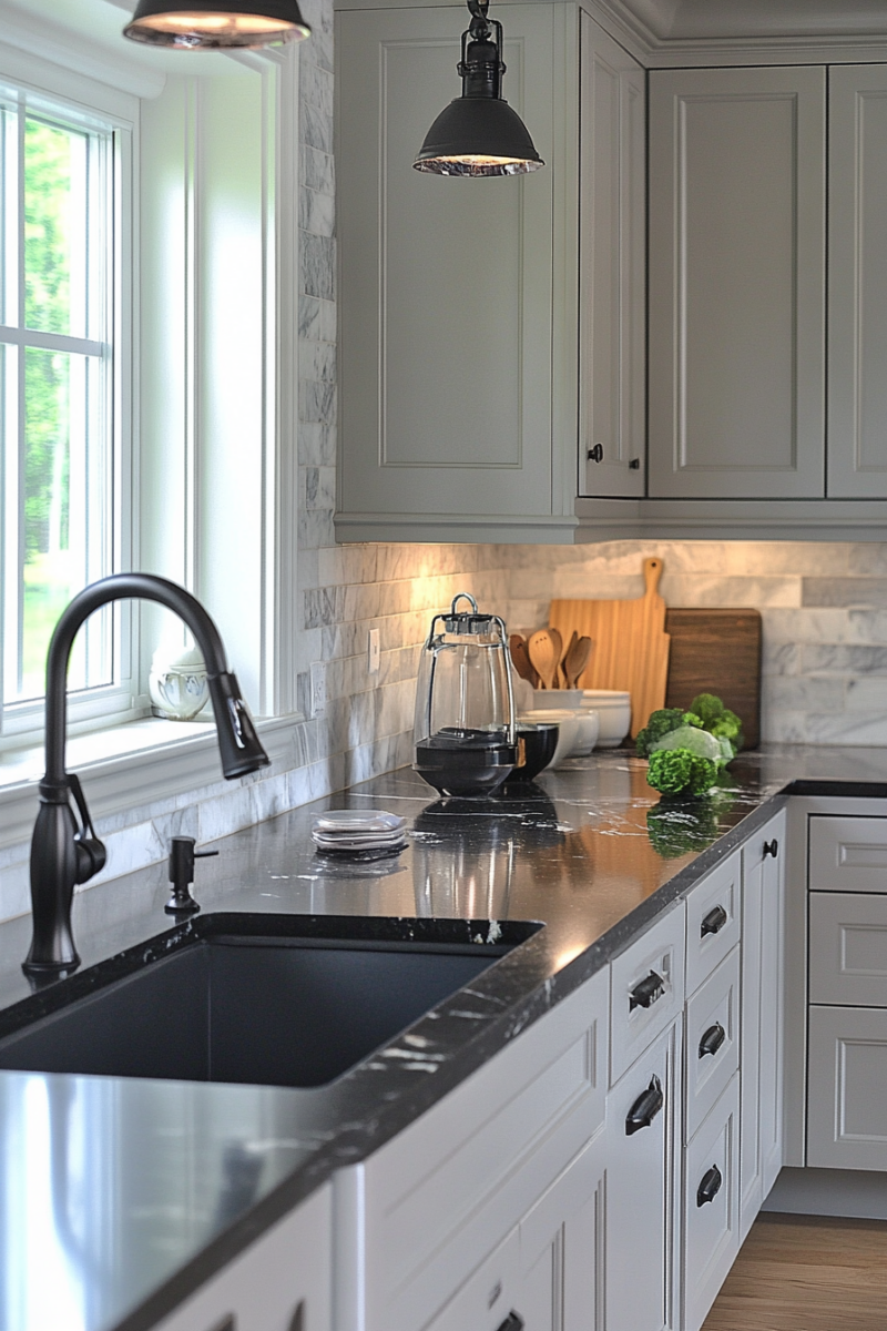 This is a great option if you’re drawn to a more traditional or farmhouse aesthetic but still want the sleekness of black countertops.