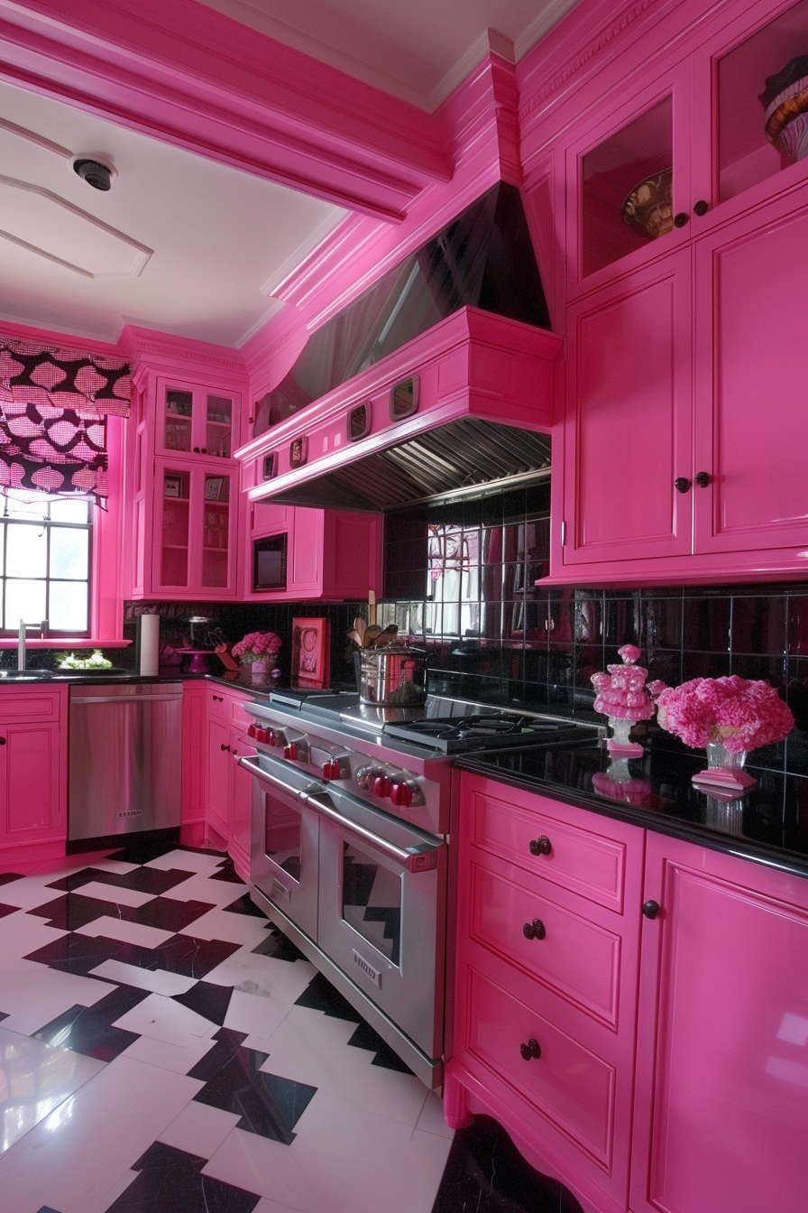 For walls, a pale blush pink can act as a neutral, providing just enough color to soften the boldness of the black countertops.