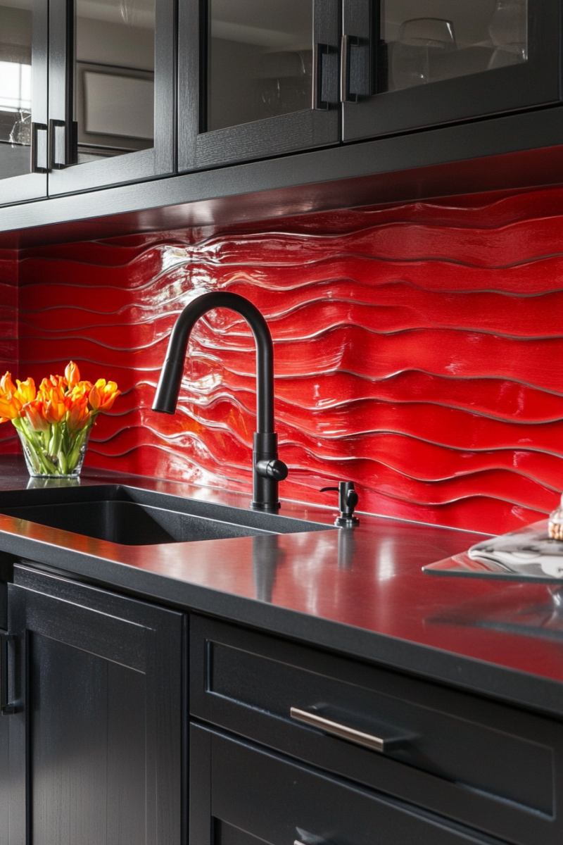 If you’re feeling daring, red is an amazing color to pair with black countertops.