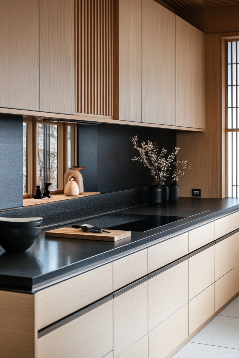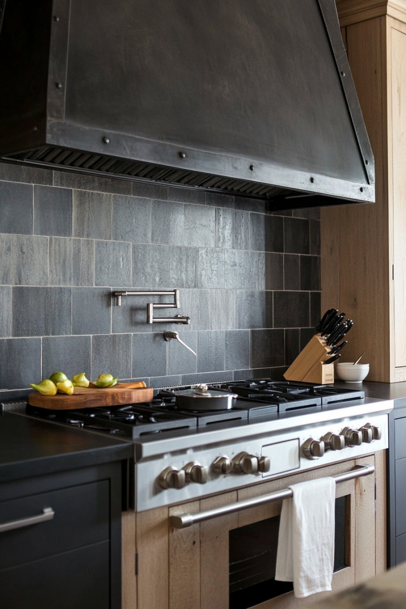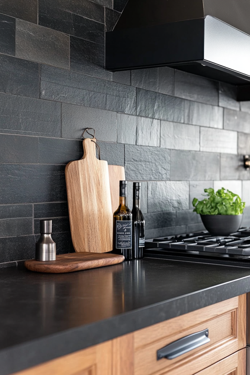 This dark-on-dark combo feels luxurious and modern, perfect if you want your kitchen to make a bold statement.