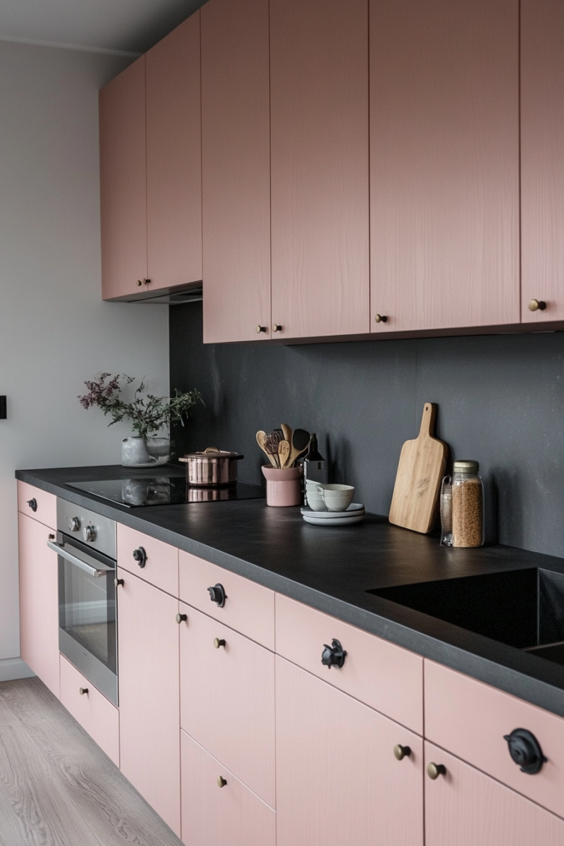 Blush pink might not be the first color you think of for a kitchen, but trust me, it works beautifully with black countertops.