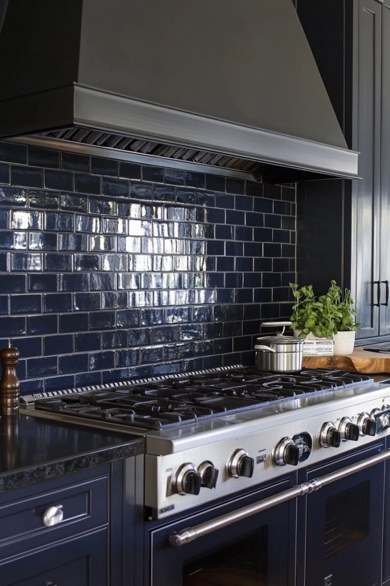 There’s something so elegant about pairing deep navy blue with black countertops.