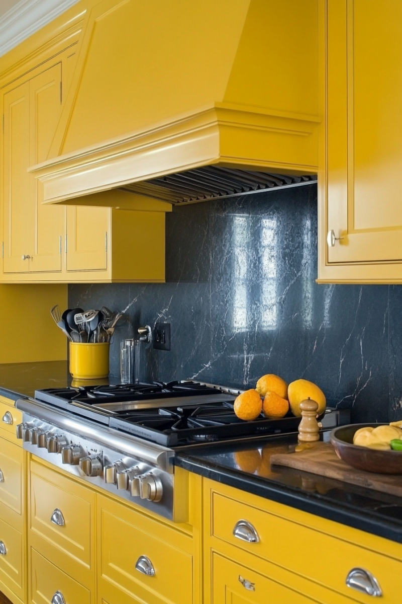If you’re feeling bold, consider a vibrant yellow backsplash or even yellow cabinetry.