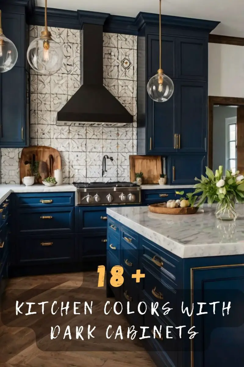 Navy blue is one of the most timeless and elegant colors you can choose for walls with dark wood cabinets.