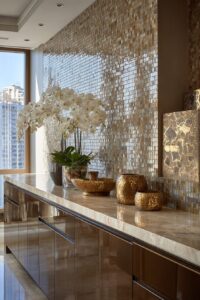 You can also play with different shapes and sizes to create visual interest and depth on your countertops.