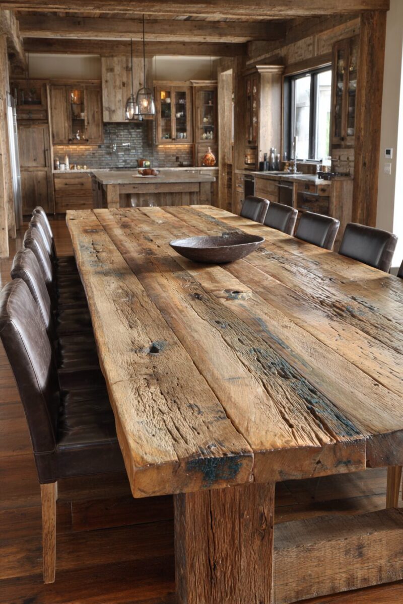 Nothing beats the character and warmth of reclaimed wood for creating a table that tells a story with every weathered board.
