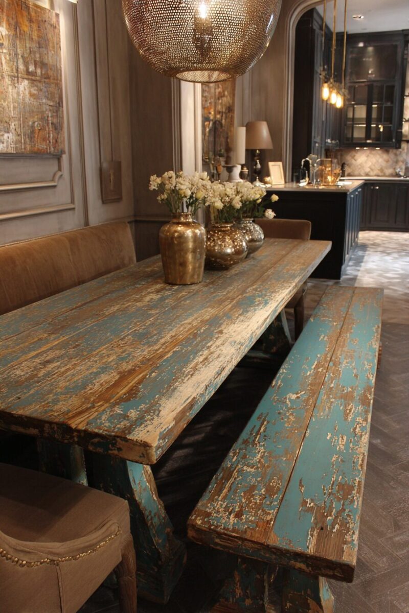 This makeover technique celebrates imperfections and natural aging, turning them into the most beautiful features of your new dining centerpiece.