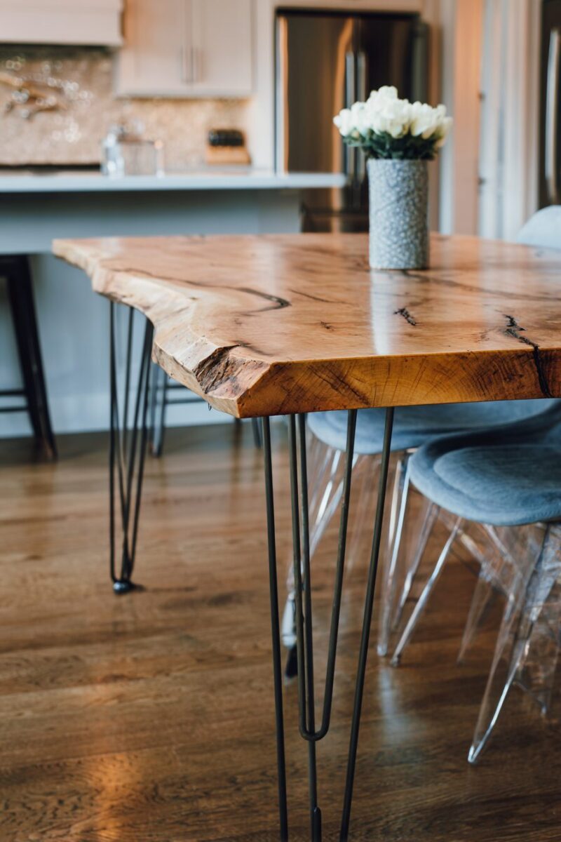 This technique involves creating a “river” of colored epoxy resin between two pieces of live-edge wood, giving your table an absolutely breathtaking natural aesthetic.