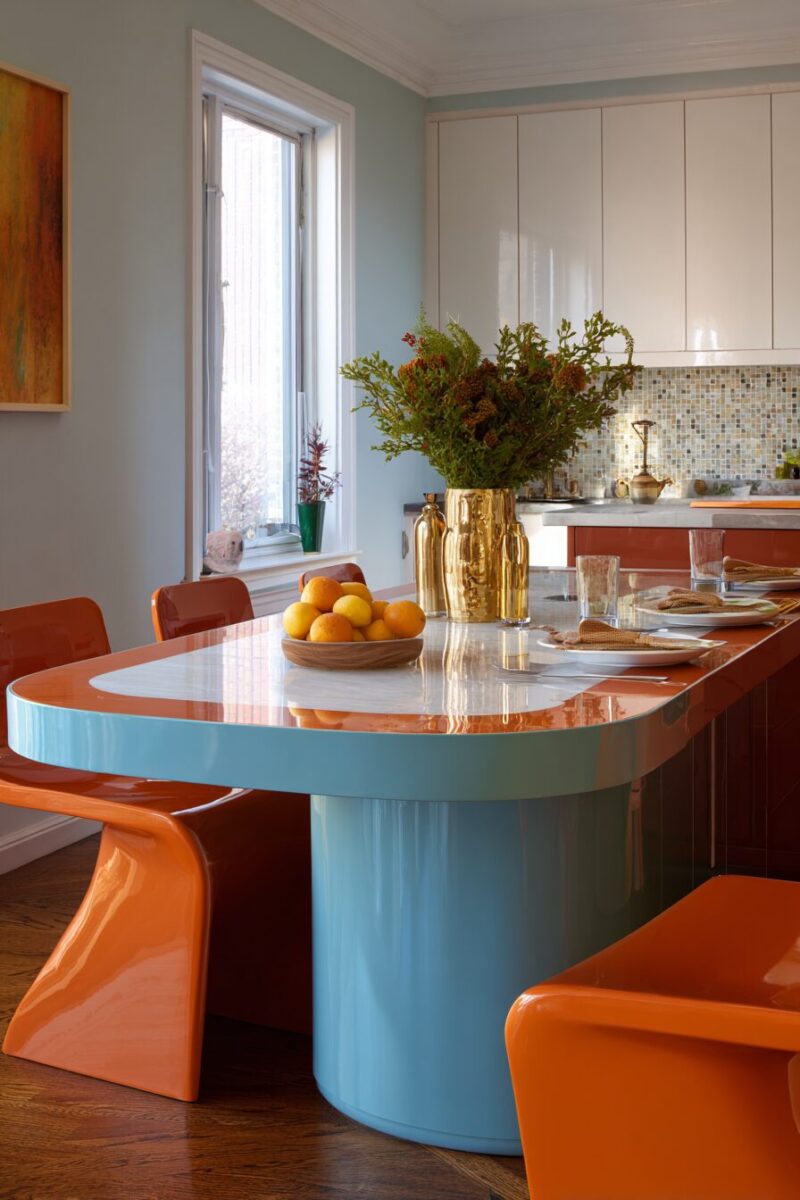 This approach uses contrasting colors to highlight different parts of your table, creating depth and interest that draws the eye.