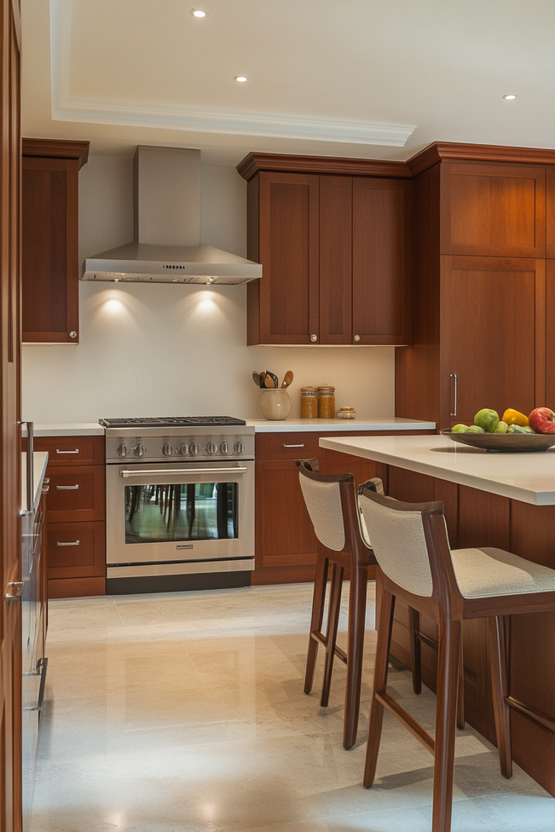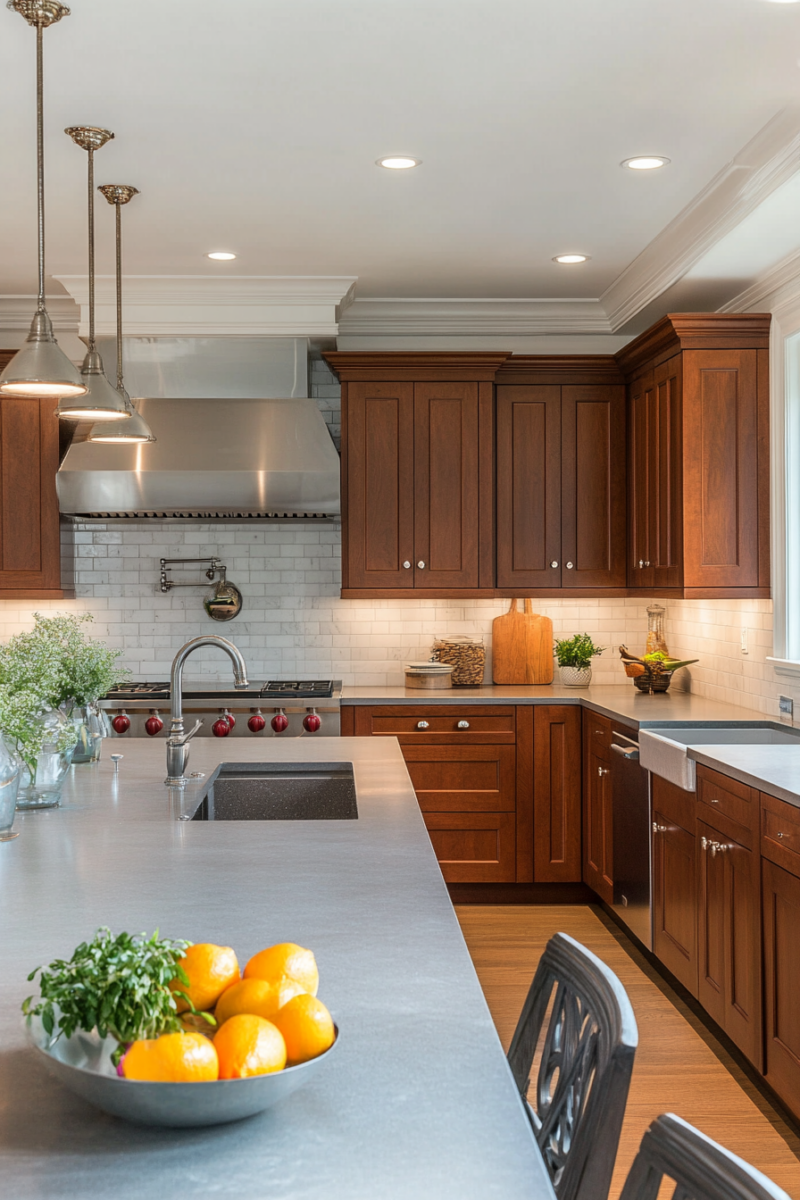 This deep, dark brown creates a seamless look when paired with cherry cabinets, giving your kitchen a cohesive and polished feel.