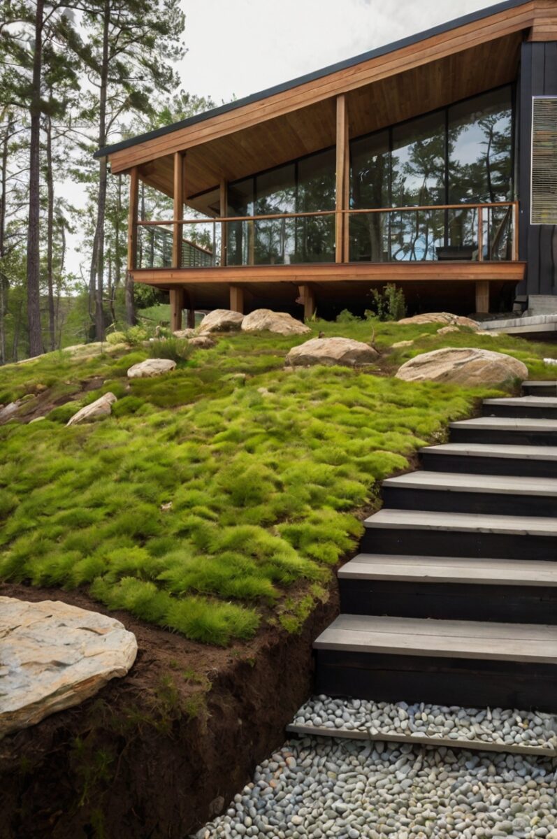 Native plants that naturally grow among rocks in your area can be incorporated into the foundation design for seamless landscape integration.