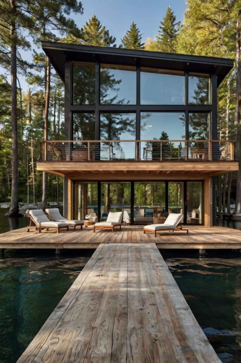Design your lake house and boat dock as a unified architectural statement that flows seamlessly from land to water.