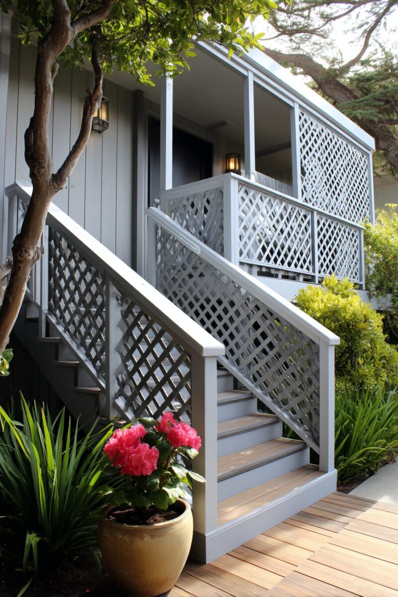 Reimagine the traditional lattice concept with an artistic trellis design specifically created to showcase stunning climbing plants, transforming your under-deck area into a living work of art.