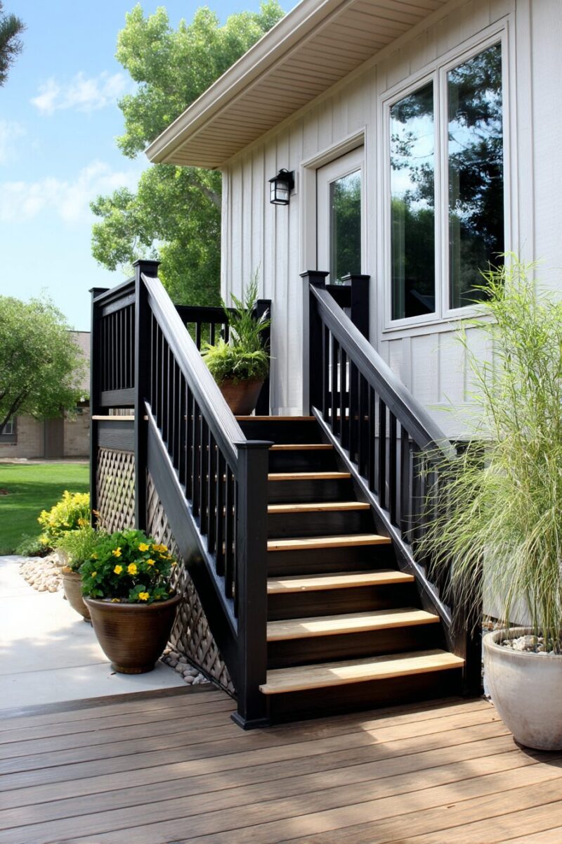These sophisticated elements create a striking juxtaposition of materials when paired with traditional deck woods, instantly modernizing your outdoor area.