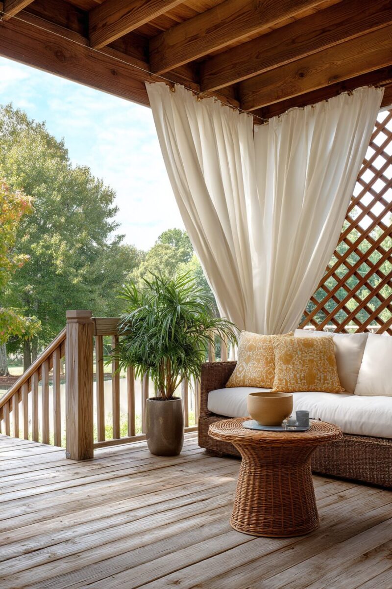 Imagine transforming the space under your deck into a resort-worthy retreat with just a few yards of fabric – that’s the magic outdoor curtains bring to your backyard.