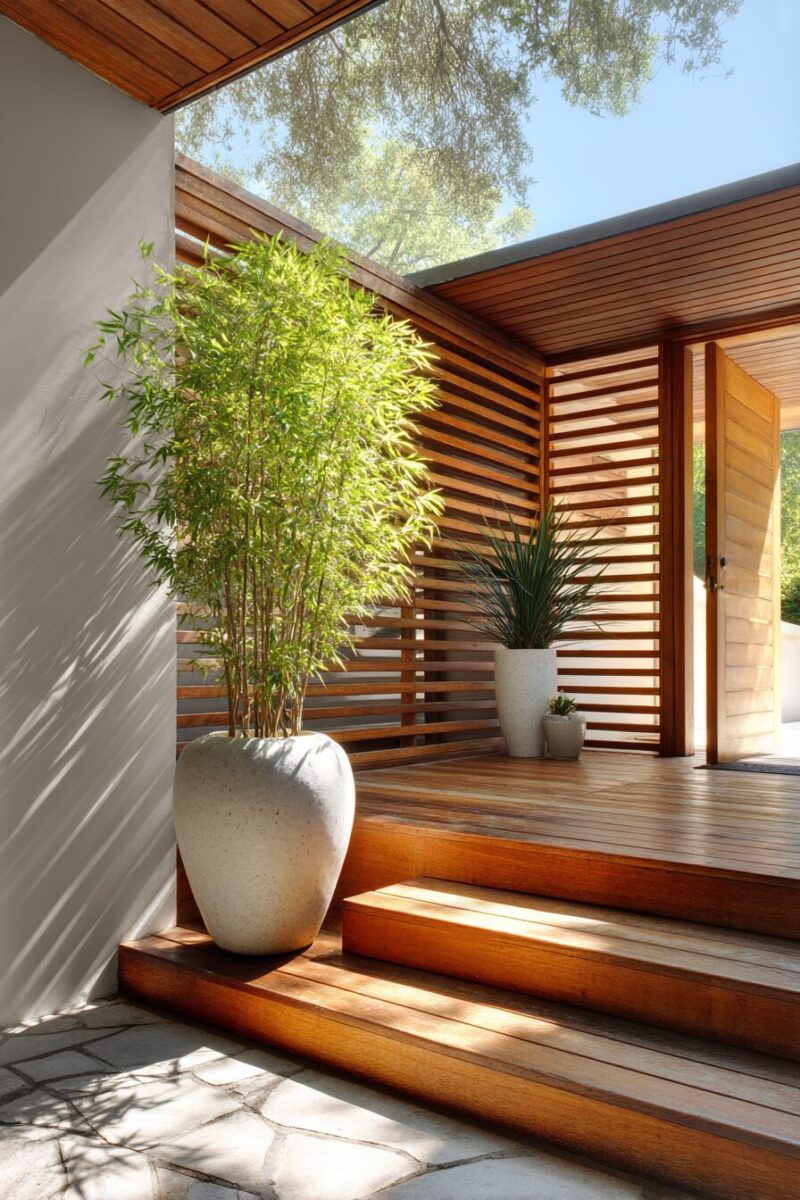 Step aside, vertical lattice – horizontal slatted screens are taking center stage in contemporary outdoor design, offering clean lines that instantly modernize any deck.