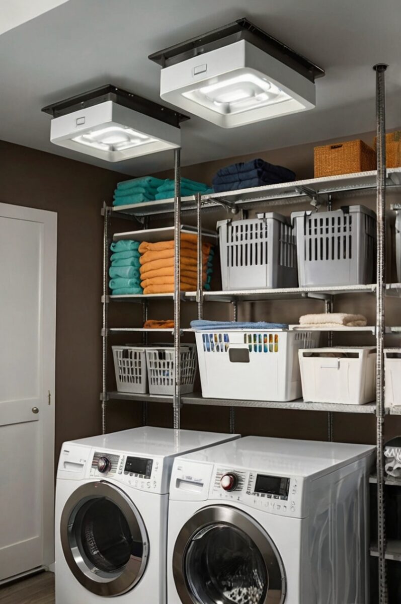 Your laundry room ceiling represents the ultimate underutilized storage opportunity for items you don’t need every day.