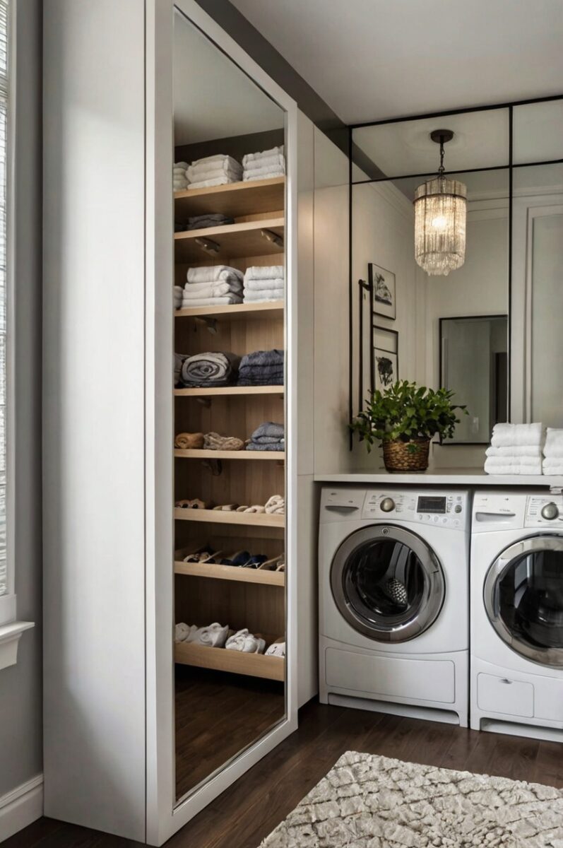 Mirrors serve double duty when they conceal storage while making your laundry room appear larger and brighter.