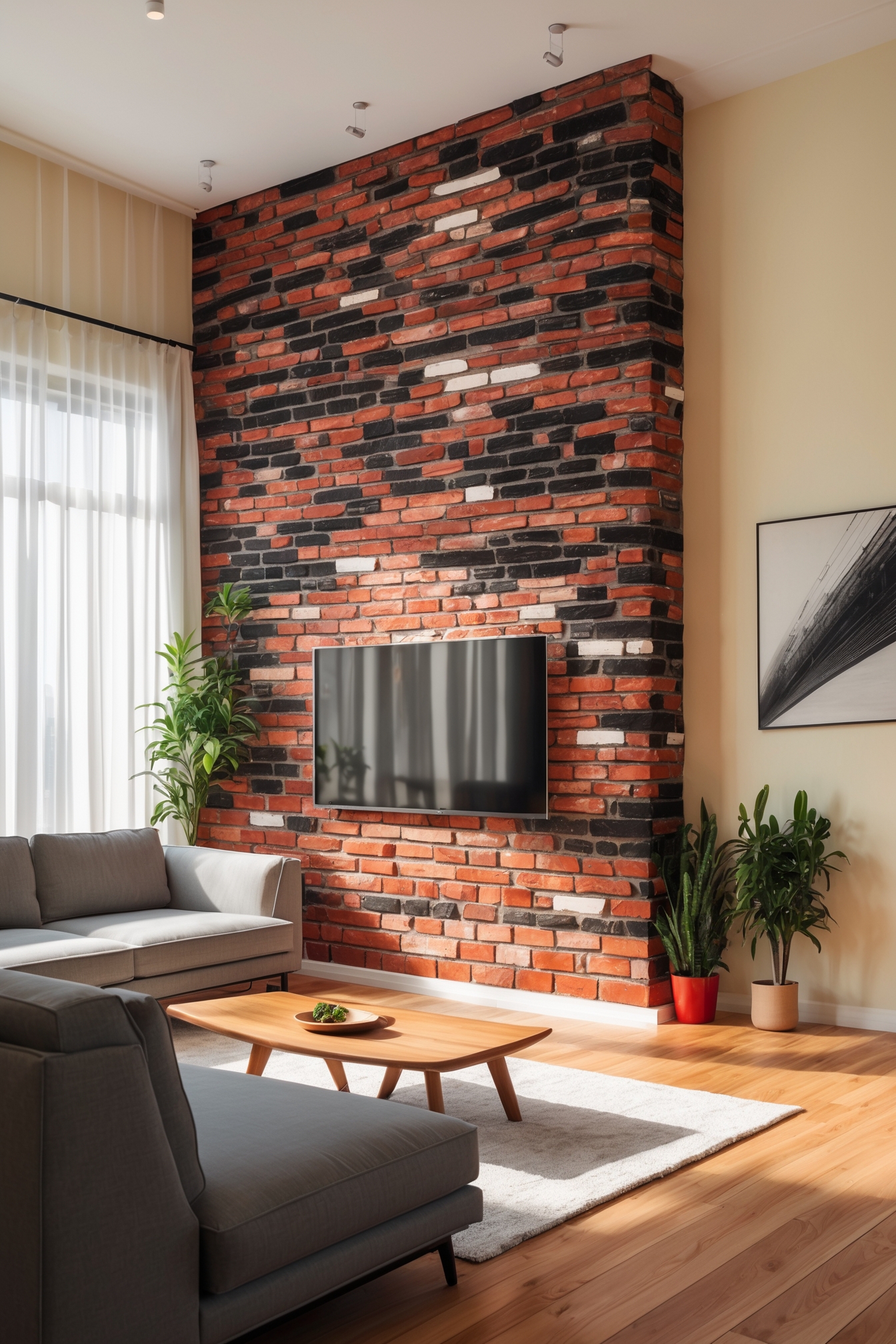 Make brick the statement wall to anchor eclectic furnishings.