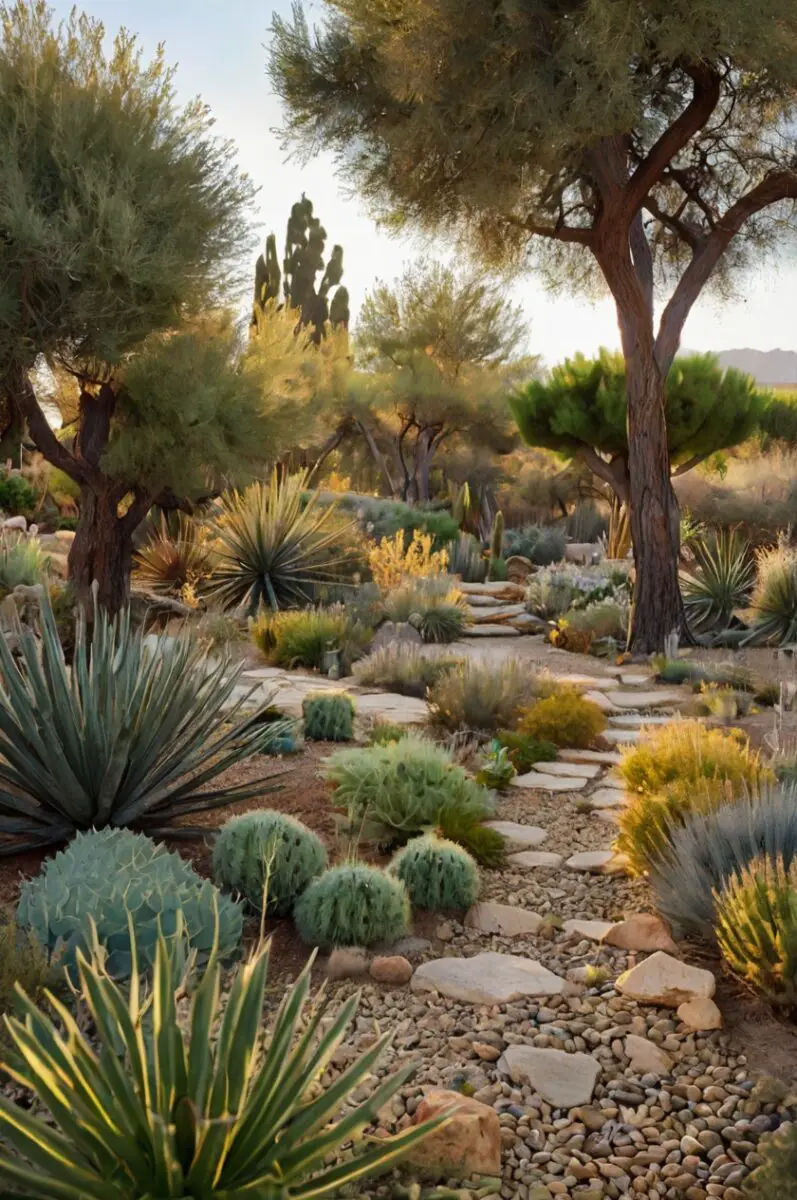 Include succulent varieties like agave, aloe, or sedum that store water in their tissues and provide striking architectural forms with minimal care requirements.