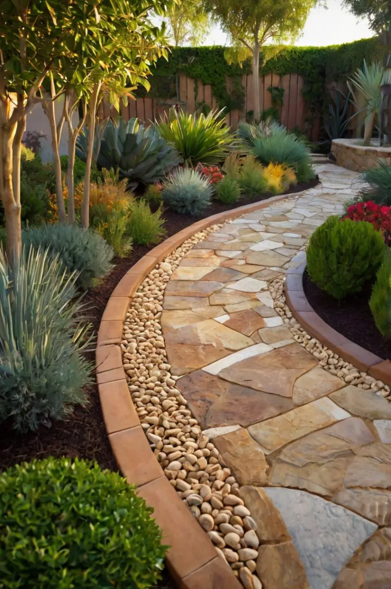 Edge your pathways with appropriate border materials like stone, brick, or metal strips that prevent material migration while creating clean, finished appearances.