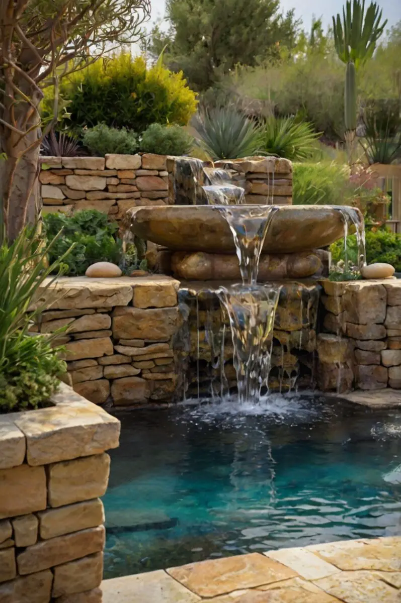 Design your water feature to incorporate multiple levels or tiers that create interesting water flow patterns and appealing sound variations.
