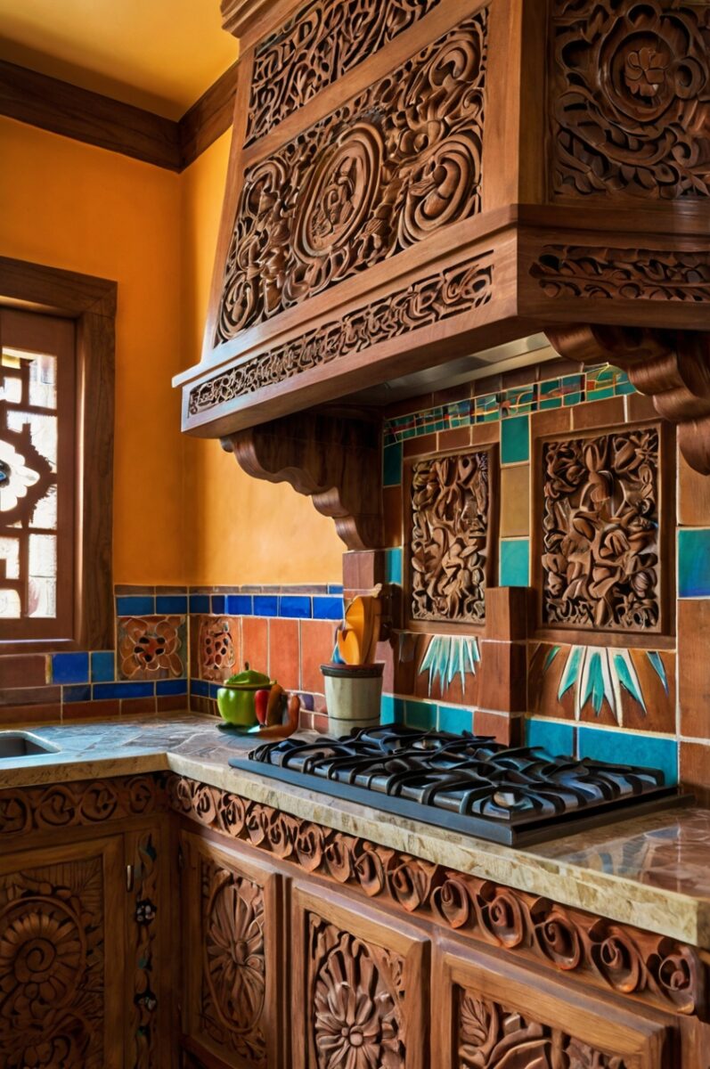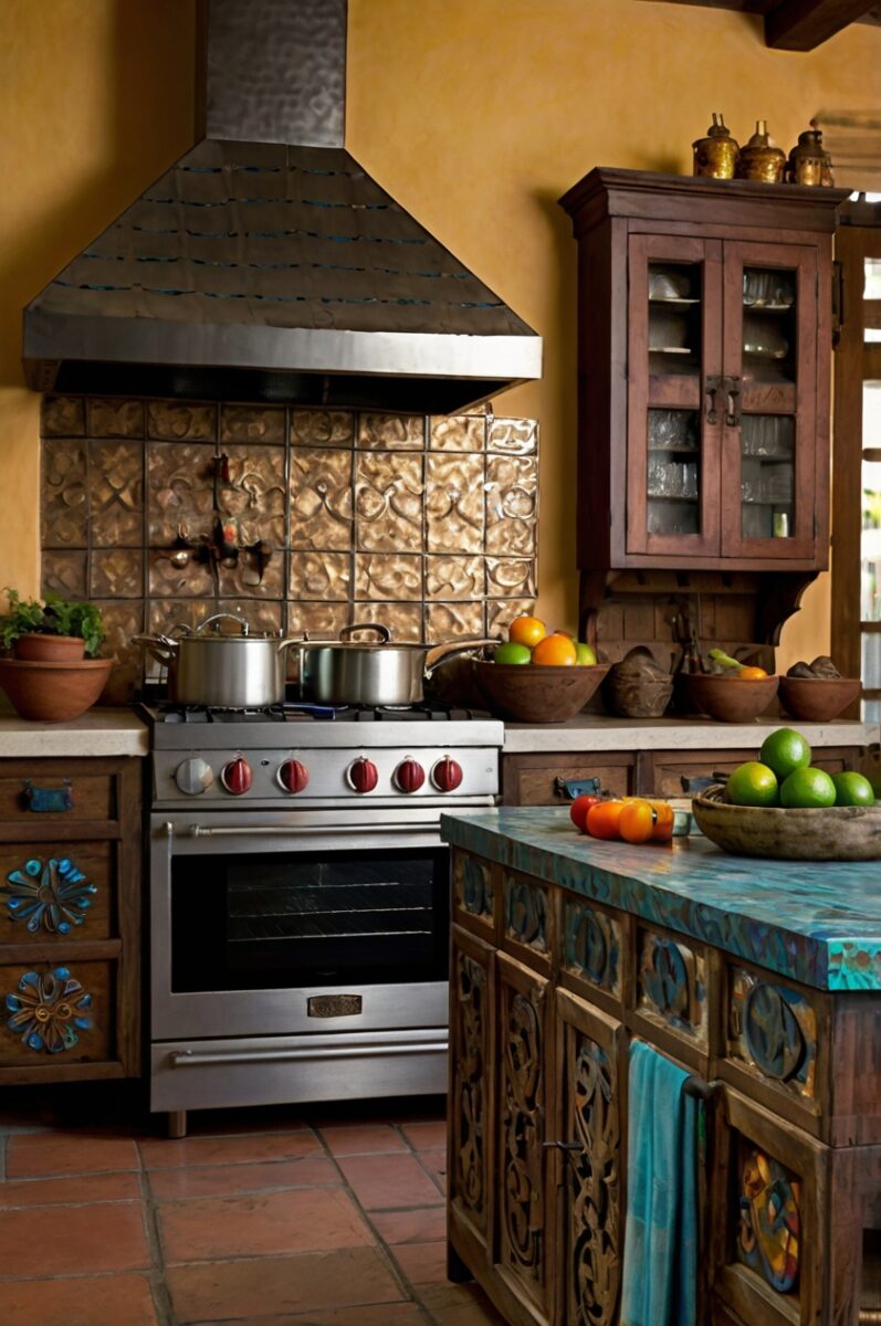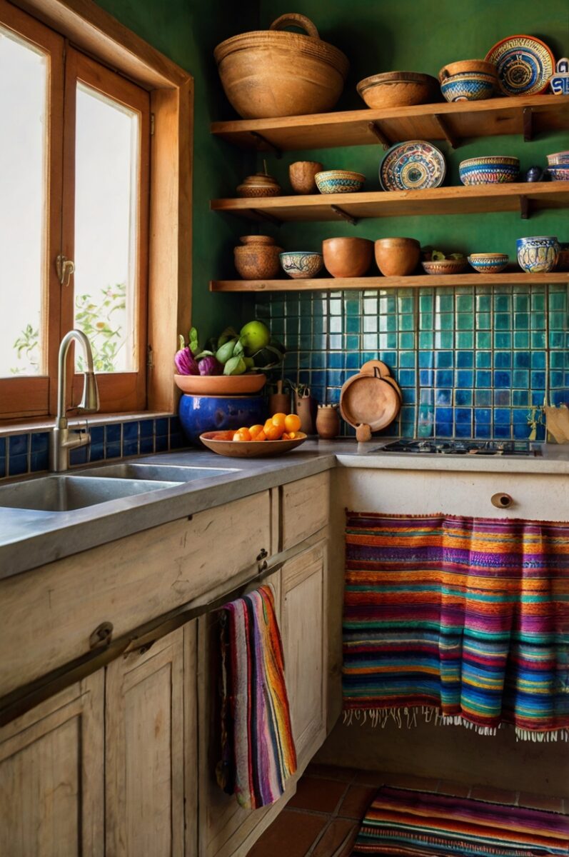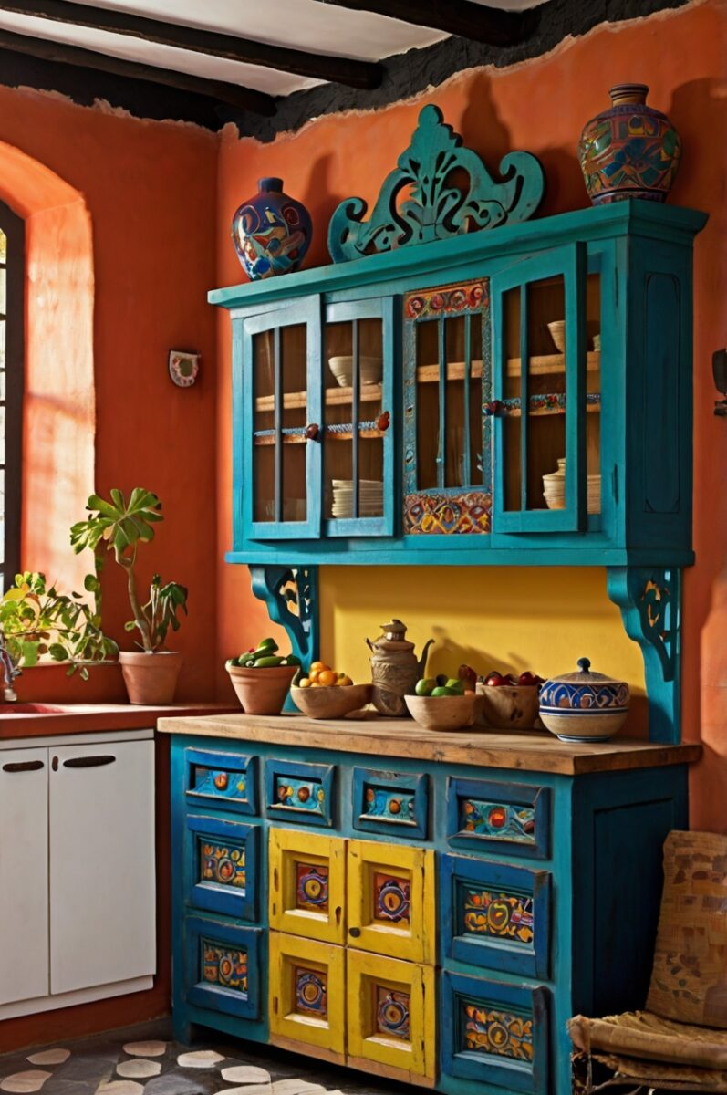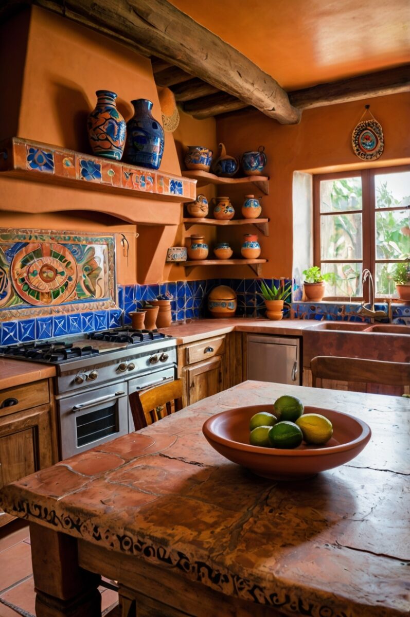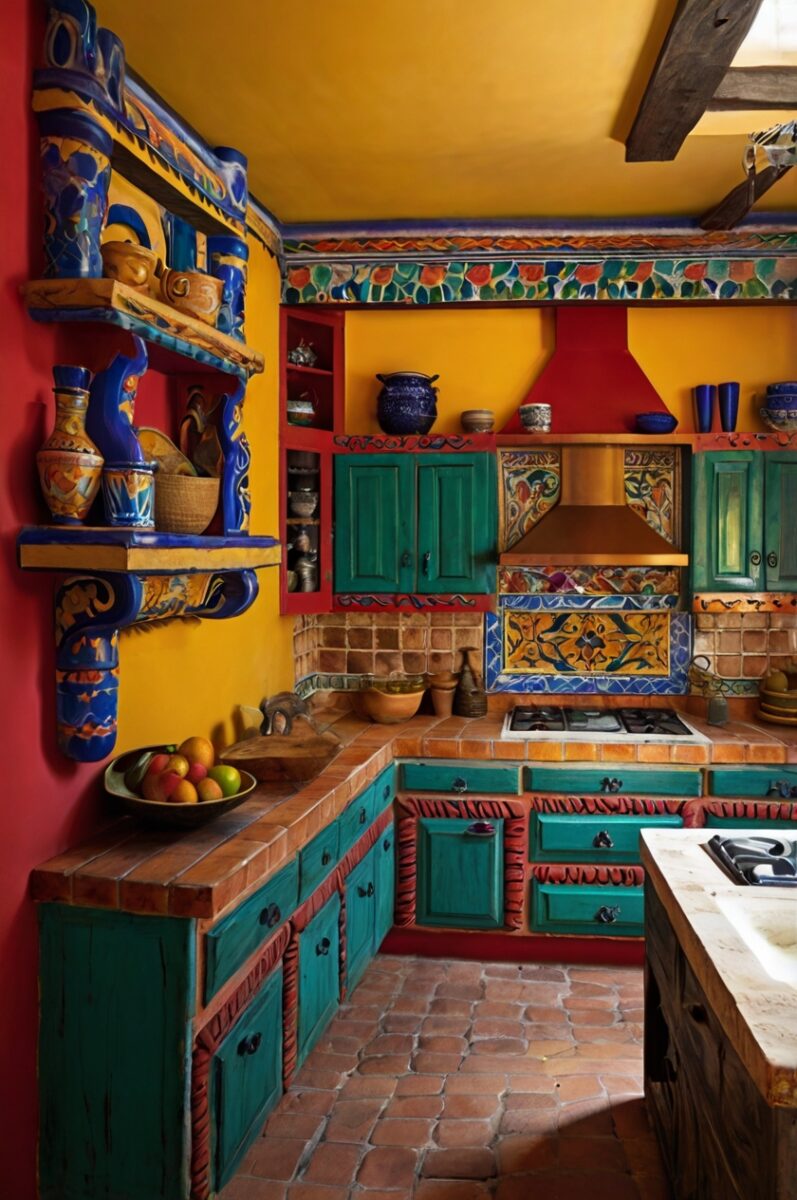 The bold colors, the rustic charm, the handcrafted details – it’s not just a cooking space, it’s a fiesta of the senses.