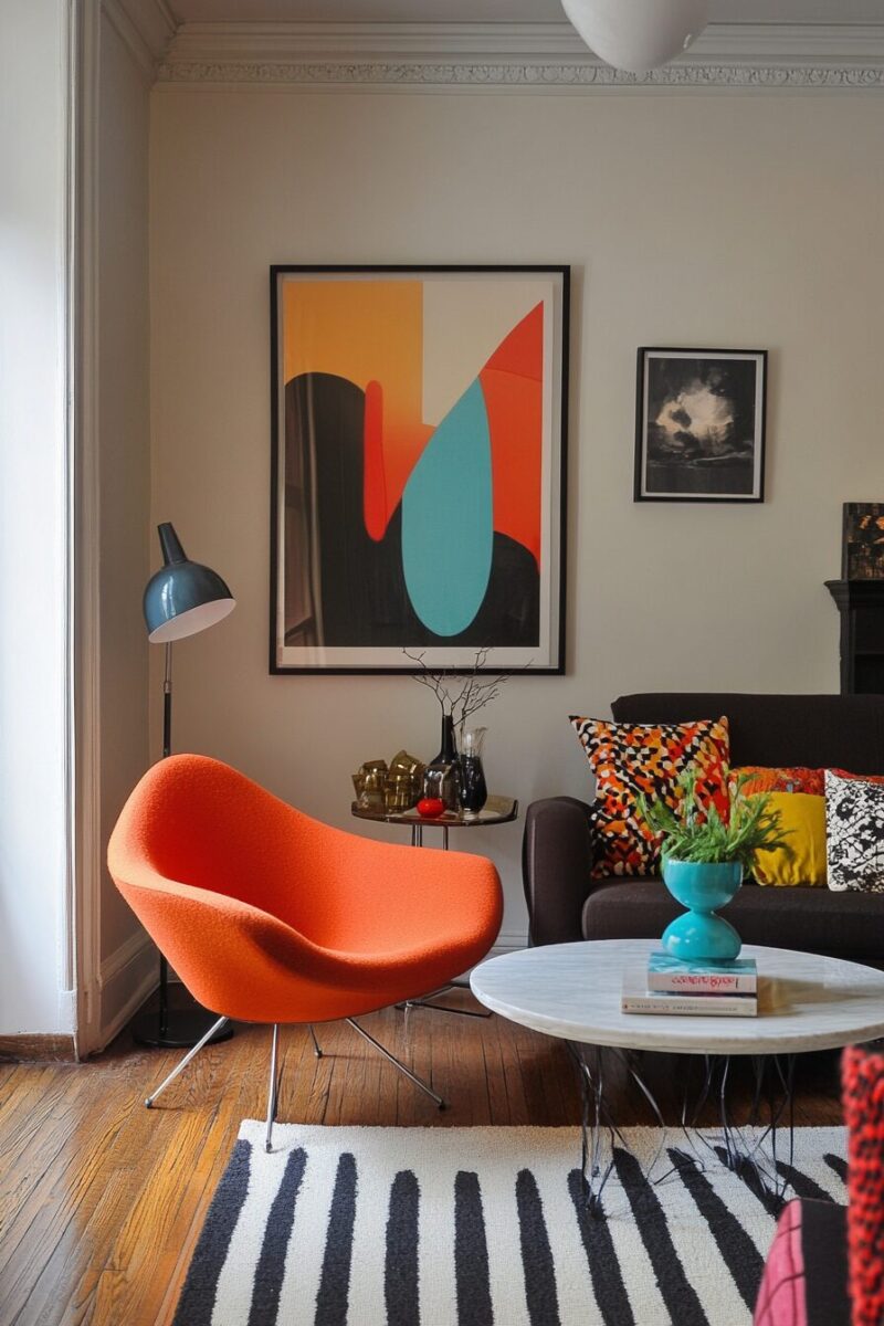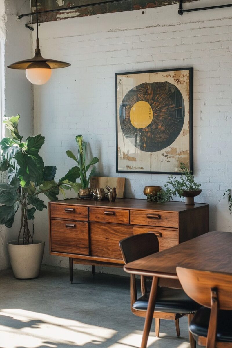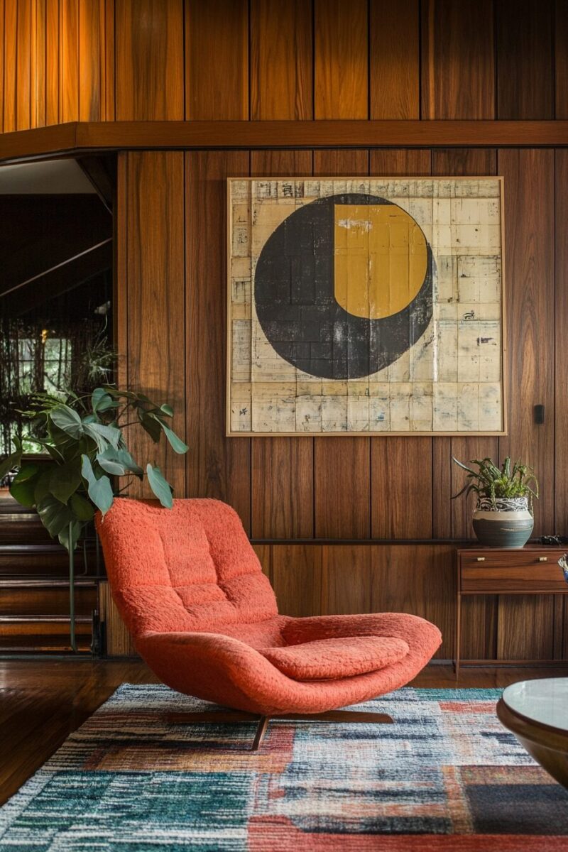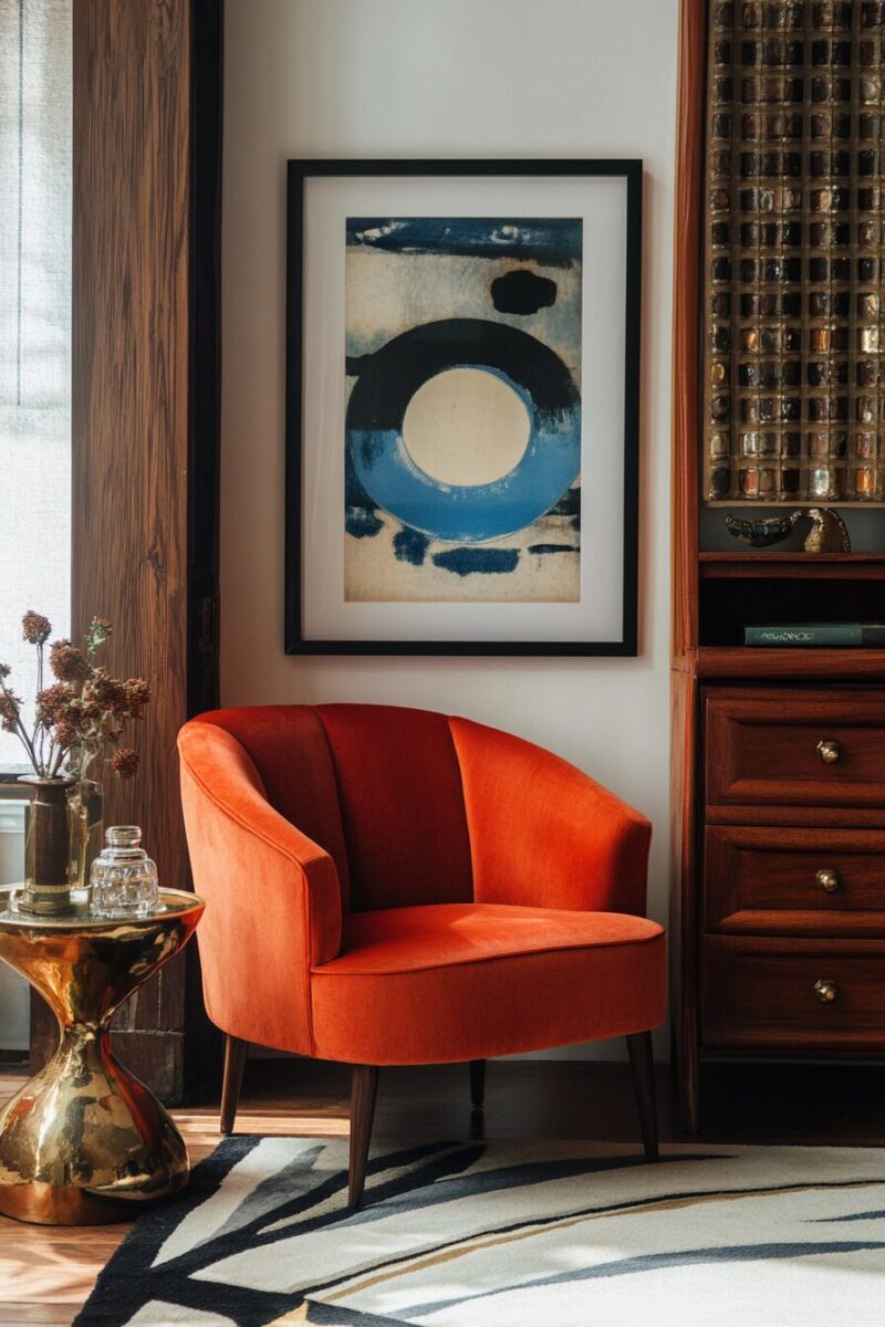 Wall art from or inspired by this period – abstract expressionism, bold graphics, or nature photography – helps anchor the mid-century aesthetic throughout your space.