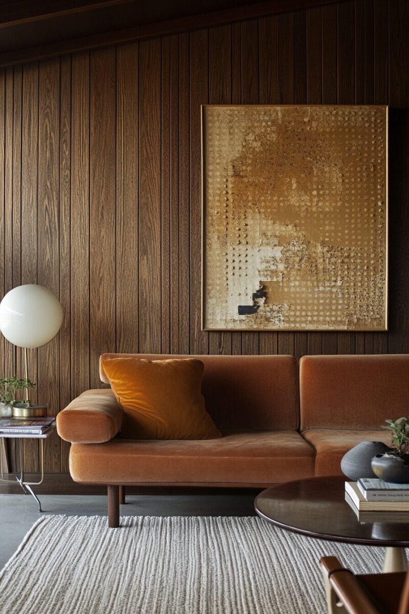 You can go bold with a full accent wall in warm walnut or teak tones, or start smaller with partial paneling that frames a specific area.