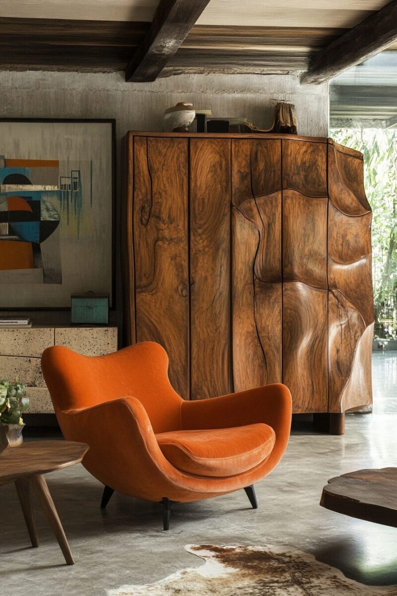 Wood is the undisputed king in mid-century design, so look for walnut, teak, or oak pieces that showcase their natural grain.