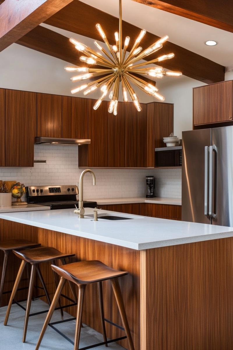 Lighting is one of the easiest ways to make a bold statement in your mid-century modern kitchen.