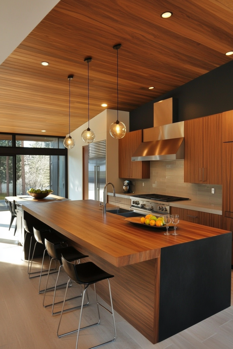 Another idea is to add a wooden countertop to your island or breakfast bar.