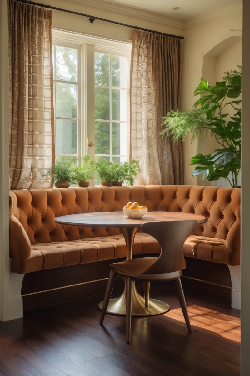 I’ve seen gorgeous nooks with caramel leather tufted benches that age beautifully.