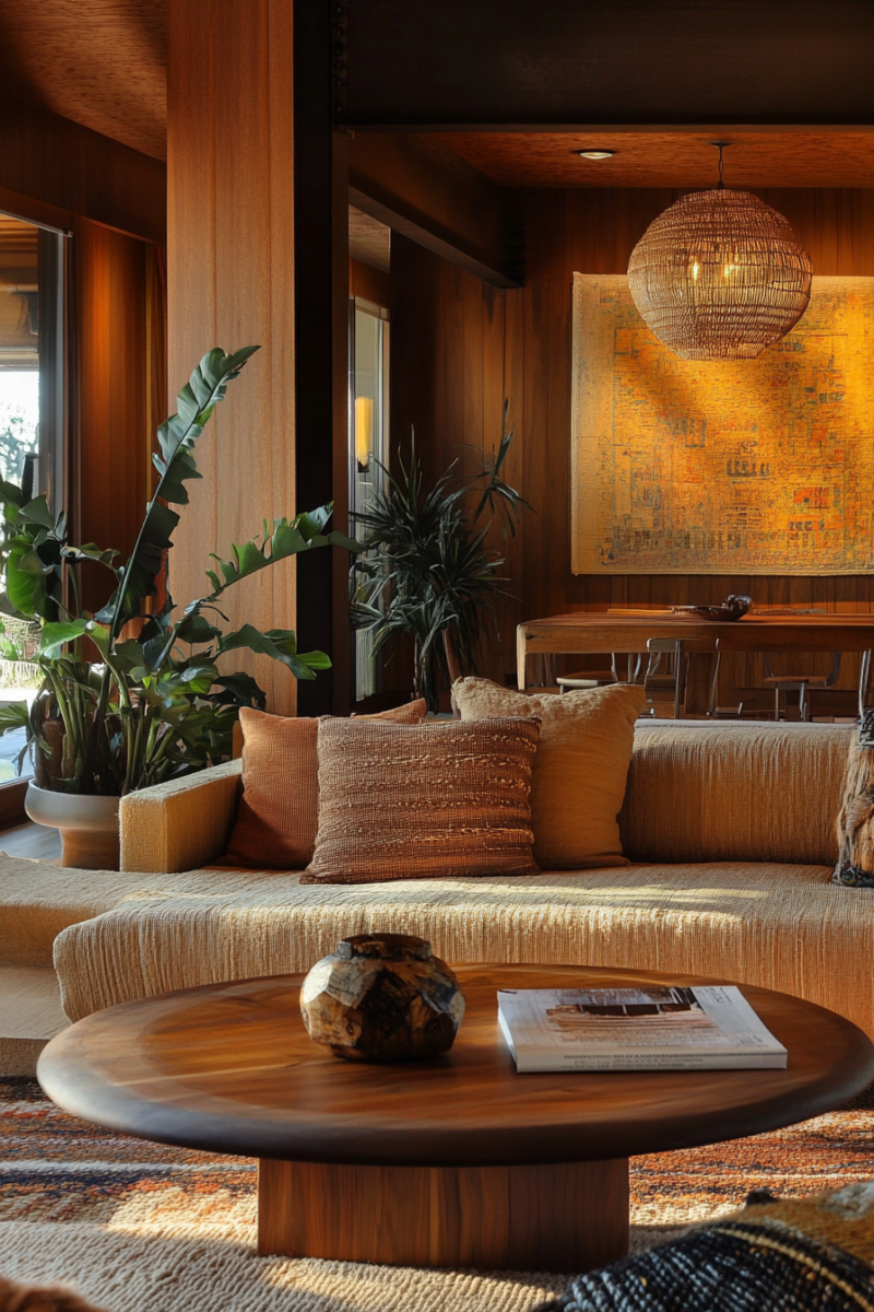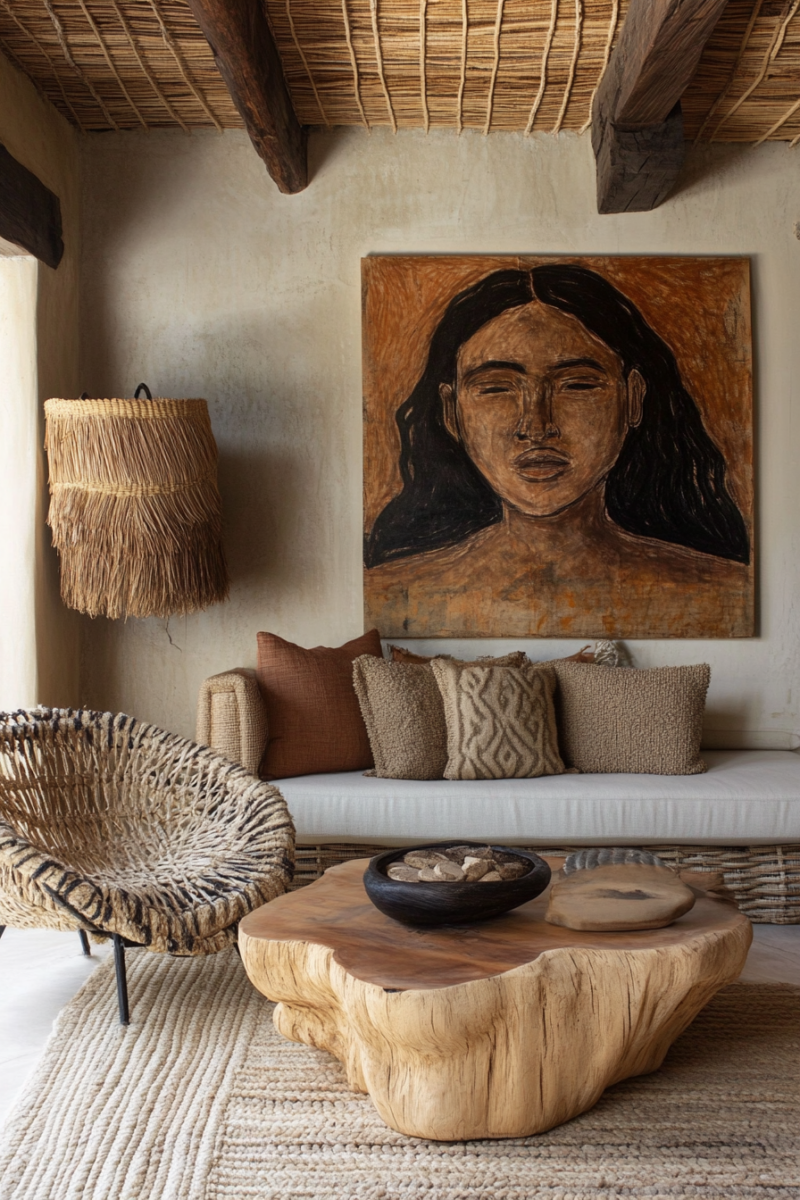 Think warm wood tones, woven textures, and earthy accents that bring a sense of coziness and invite you to relax.