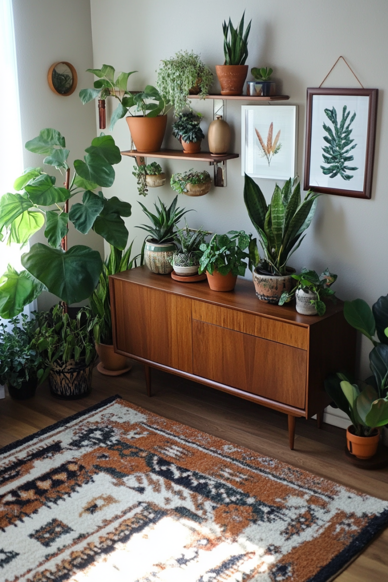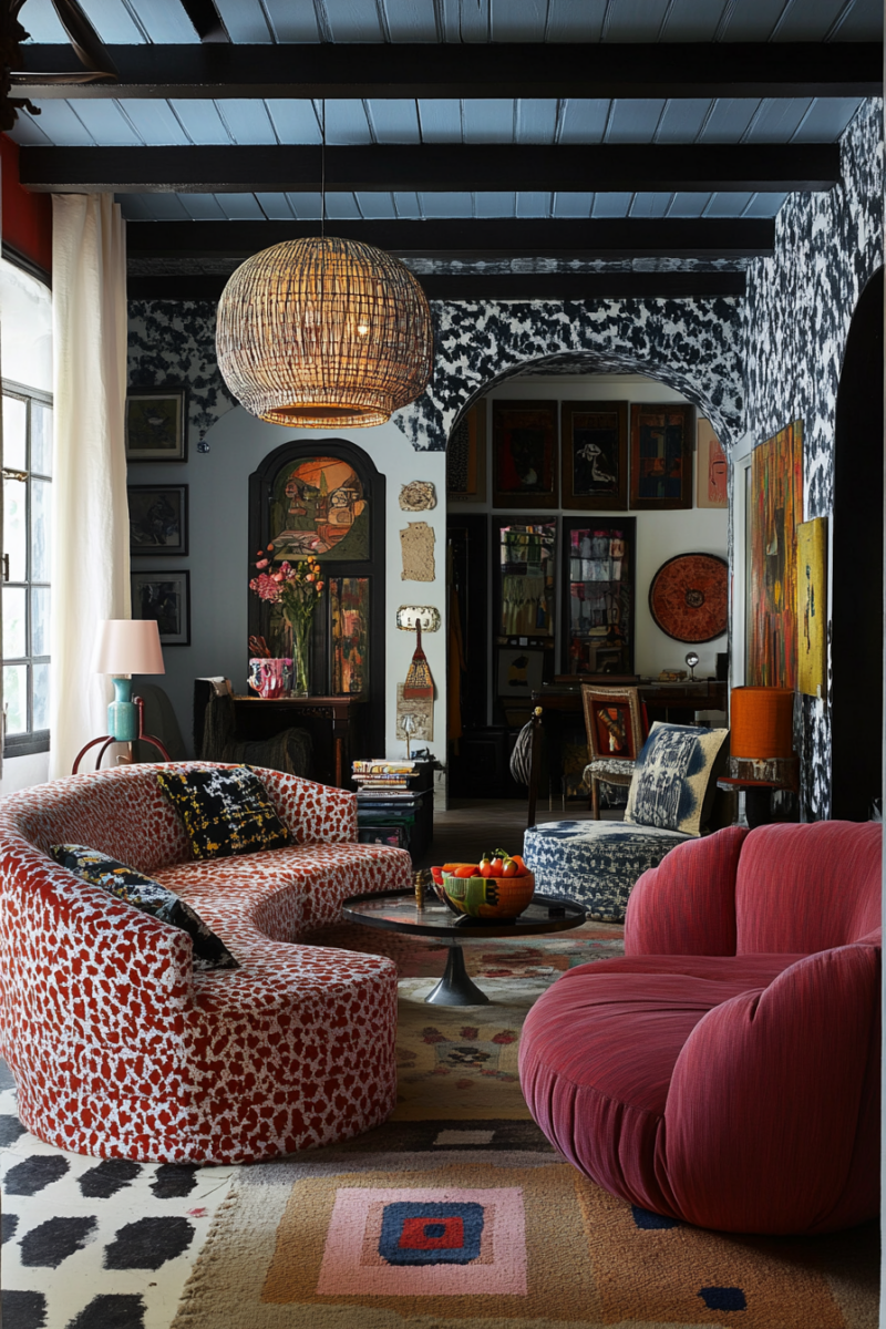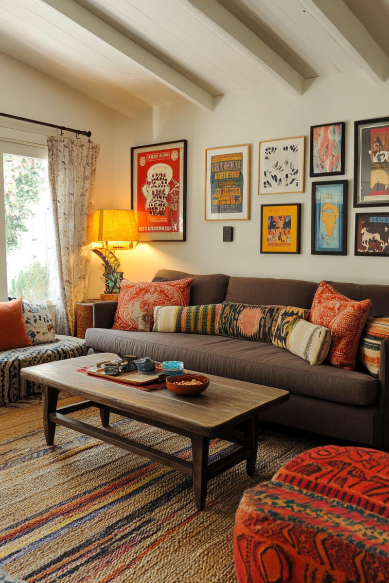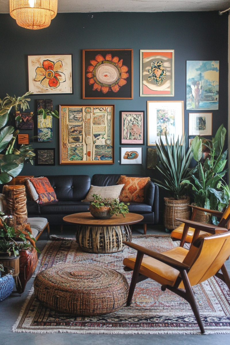 That’s when I saw it—a stunning living room that effortlessly blended the sleek lines of midcentury modern with the free-spirited charm of bohemian decor.