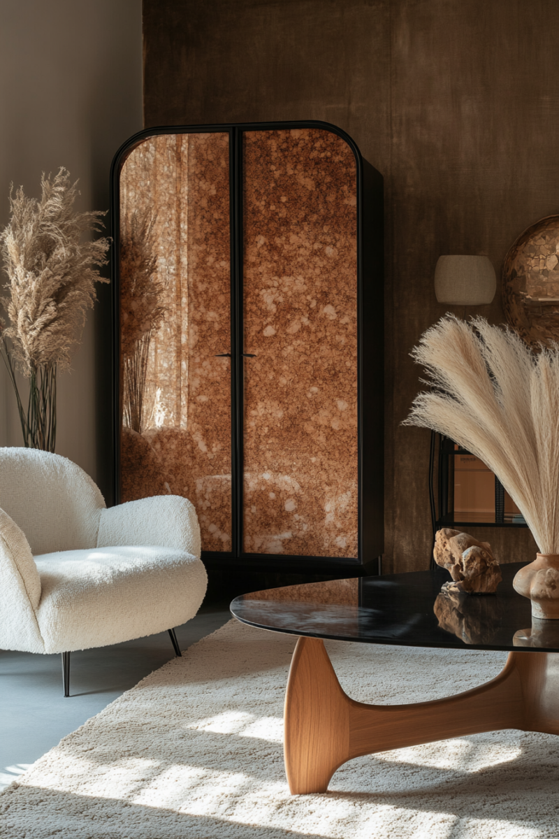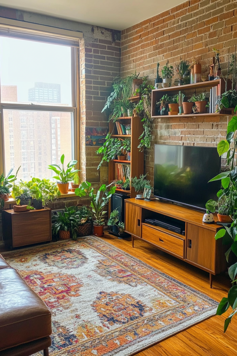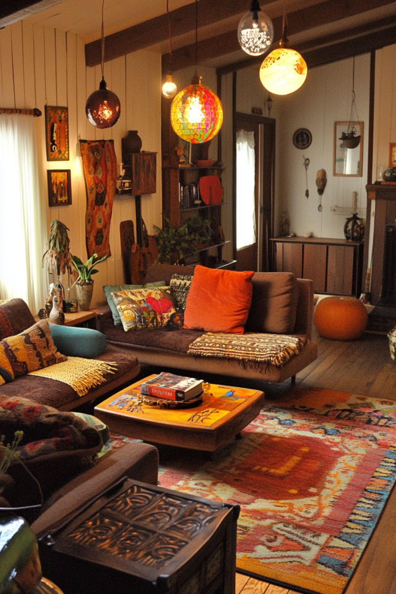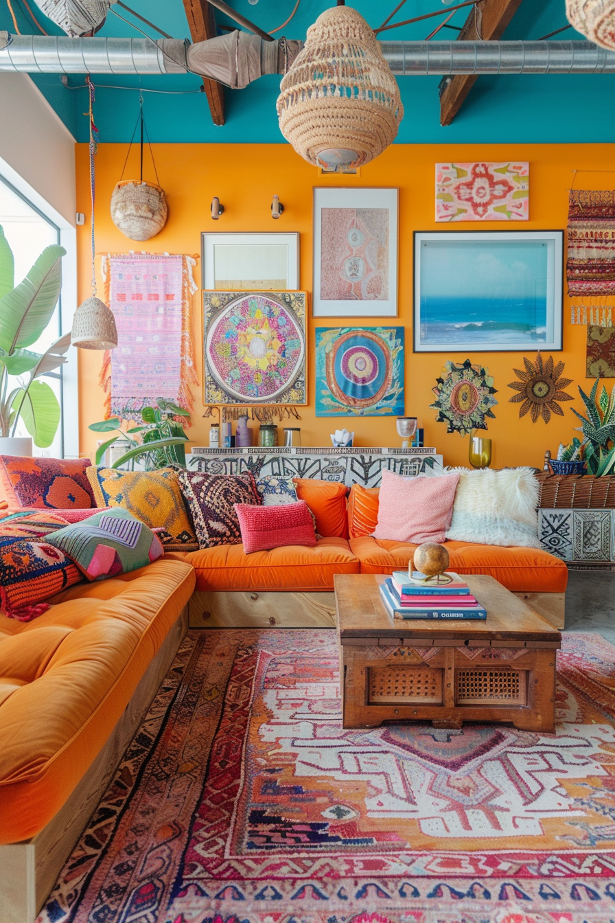 That’s when I saw it—a stunning living room that effortlessly blended the sleek lines of midcentury modern with the free-spirited charm of bohemian decor.