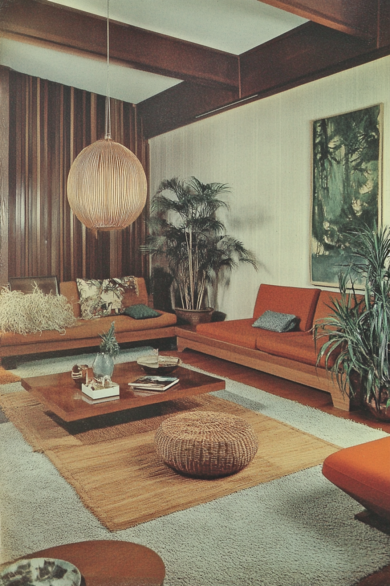 Start with a statement ceiling light, such as a sputnik chandelier or a woven pendant light, that serves as the room’s main light source while adding a touch of midcentury modern flair.