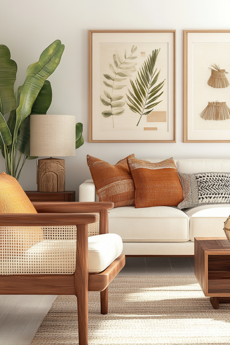 Incorporate natural materials like wood, rattan, and leather through your furniture and decor choices.
