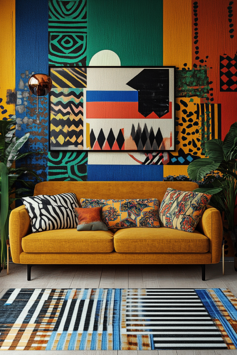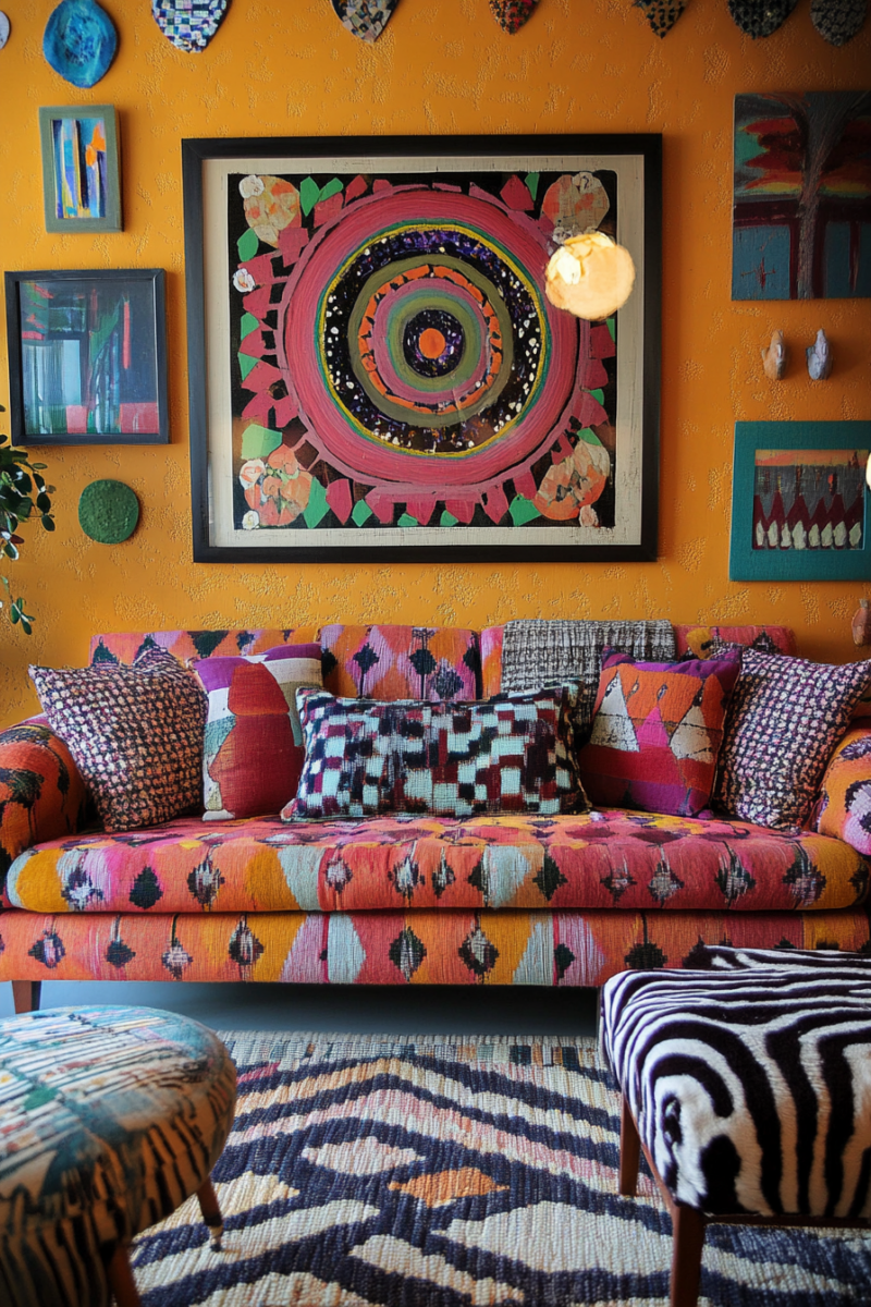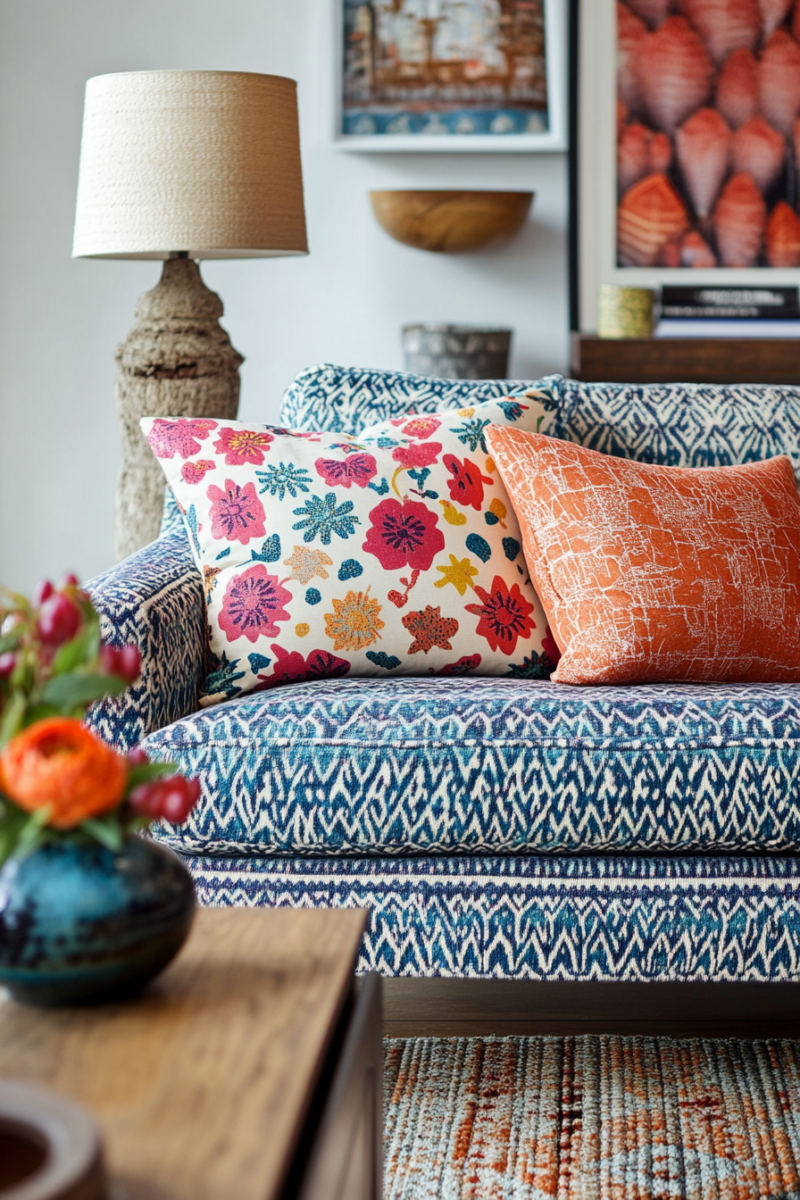 Embracing a variety of prints and textures creates a playful, eclectic look that adds depth and personality to your living room.