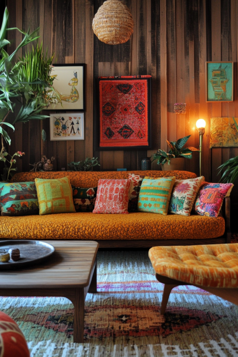 Choose a mix of earthy, muted tones like olive green, terracotta, and mustard yellow, or opt for a bolder scheme with jewel tones like teal, magenta, and gold.