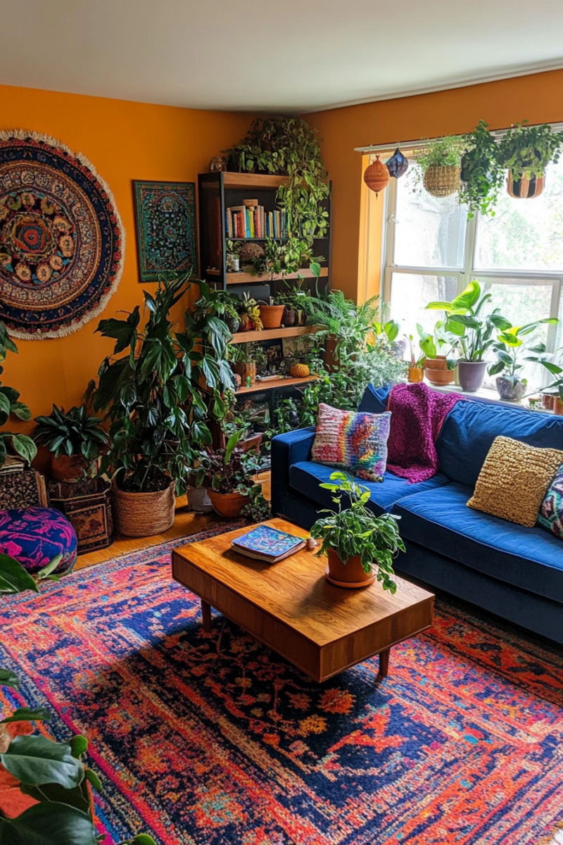 Not only will your plant collection purify the air and boost your mood, but it will also create a lush, inviting atmosphere that makes your living room feel like a true bohemian oasis.