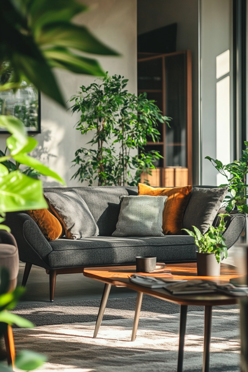 Large, statement plants like fiddle leaf figs, bird of paradise, or rubber plants instantly bring life and height to your living room, while smaller potted plants like succulents, air plants, and trailing vines add depth and visual interest.