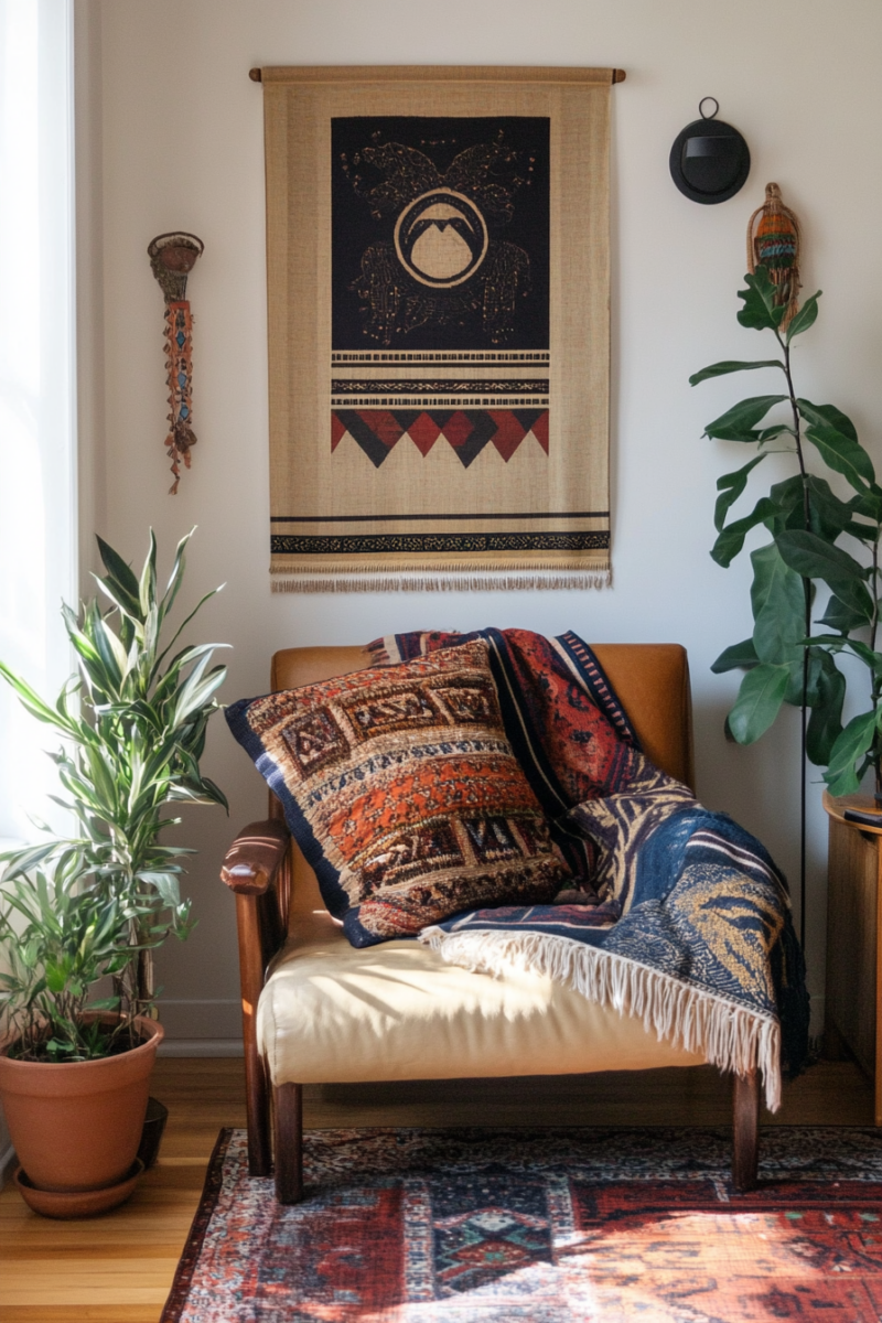 Opt for a wall hanging made from natural fibers like wool, cotton, or jute to embody the bohemian spirit and create a warm, inviting atmosphere.