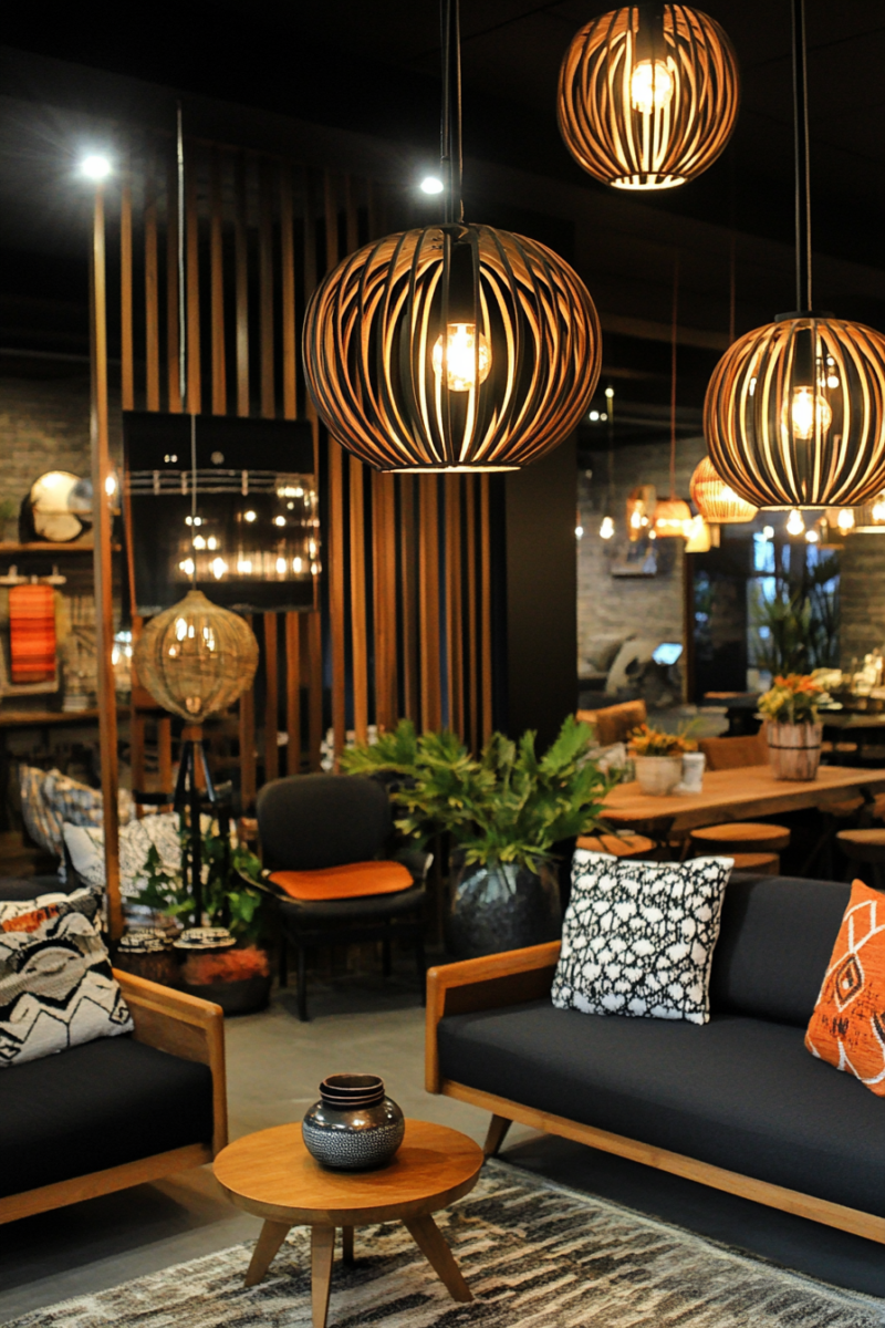 To achieve the perfect balance, incorporate a mix of modern and bohemian lighting fixtures that both illuminate and decorate the space.