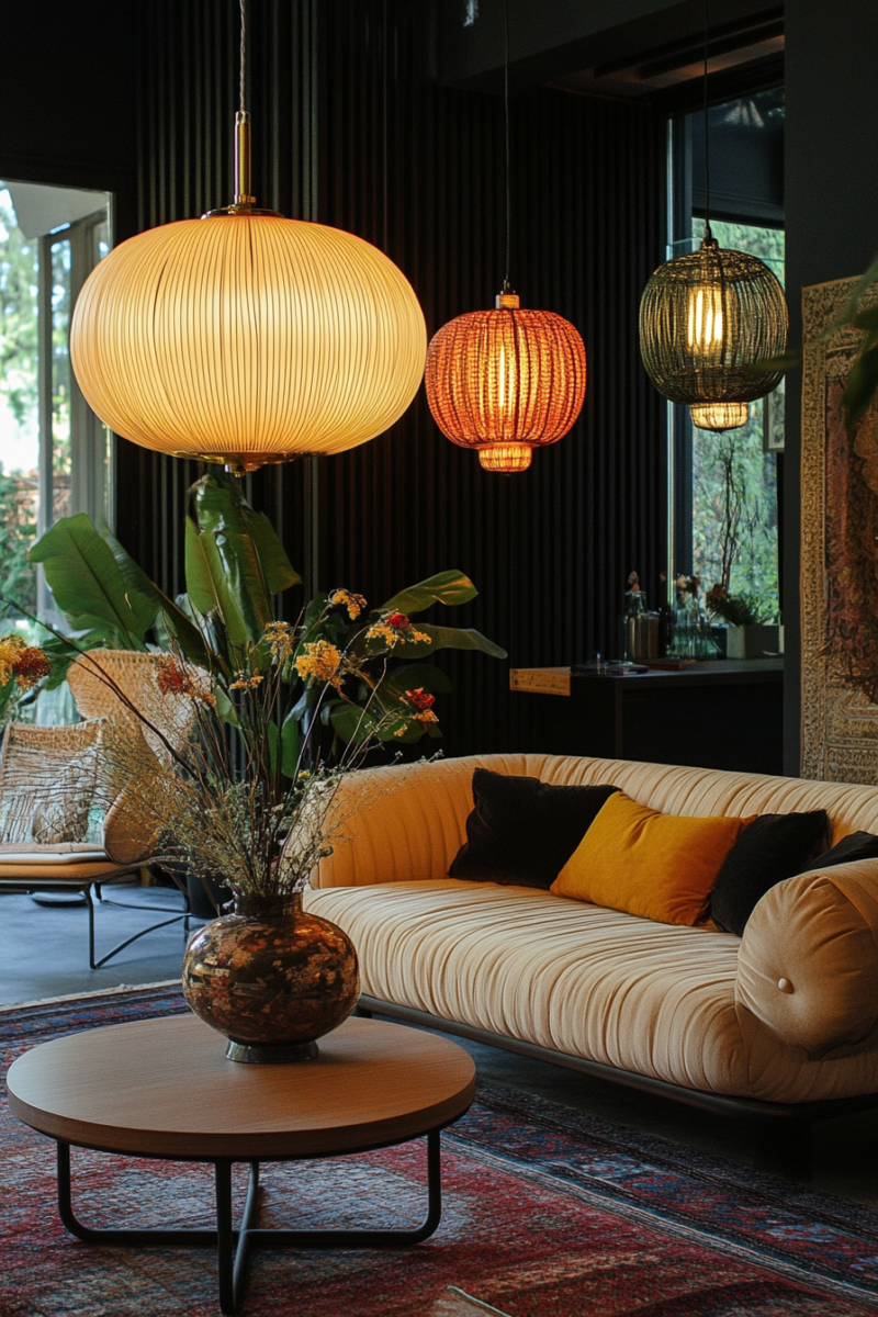 Lighting plays a crucial role in setting the mood and atmosphere of your midmod-boho living room.