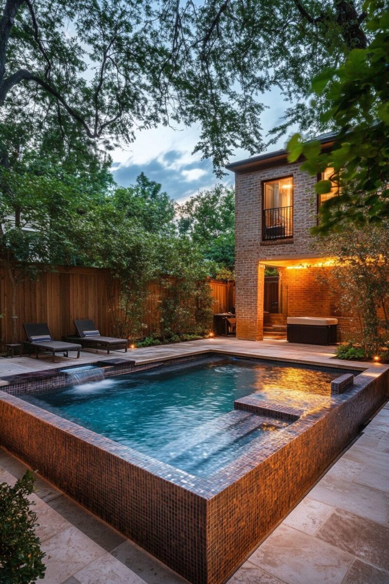 Lighting an infinity edge mini pool dramatically transforms the nighttime appearance of your backyard, as the flowing water captures and reflects light in mesmerizing ways.