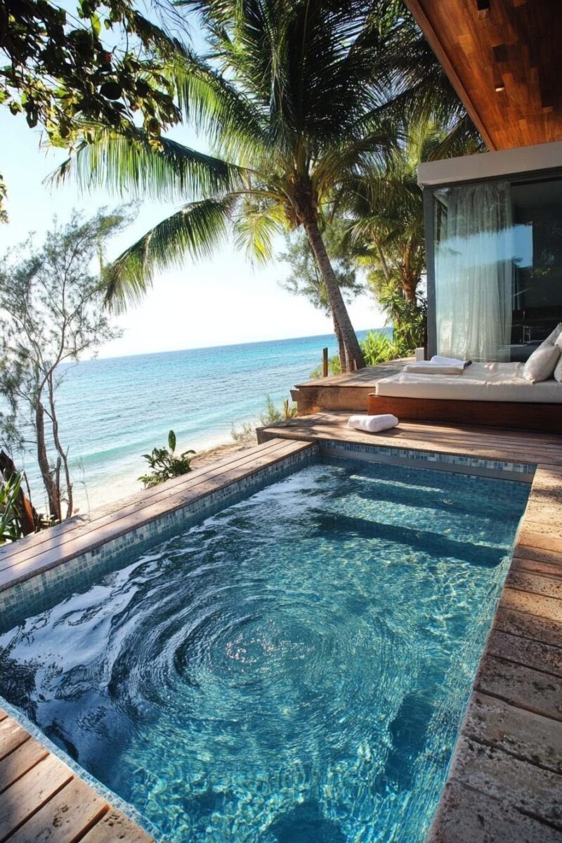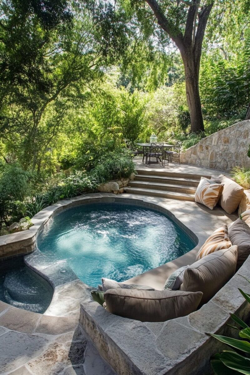 Sometimes called “spools” (spa + pool), these compact gems are designed specifically for socializing with drinks in hand rather than doing laps.