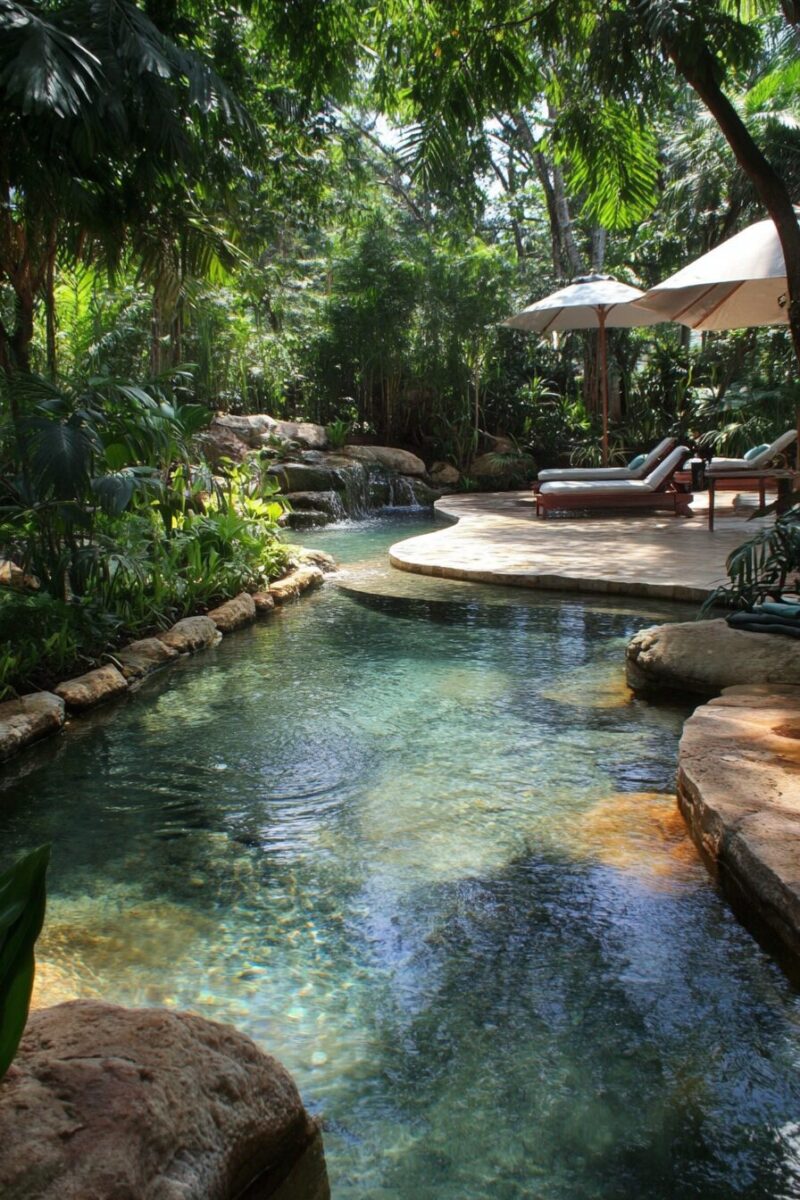 These specialized pools work particularly well when your property has even a slight elevation change that can be leveraged for the waterfall effect.